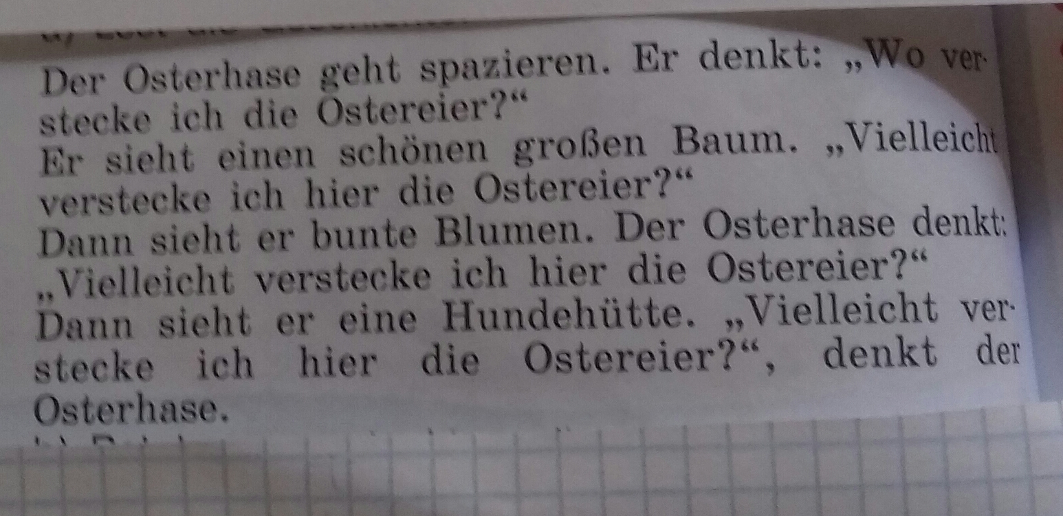 Потом он видит разноцветные цветы. Пасхальный заяц думает: "Возможно я здесь спрячу пасхальные яйца?".