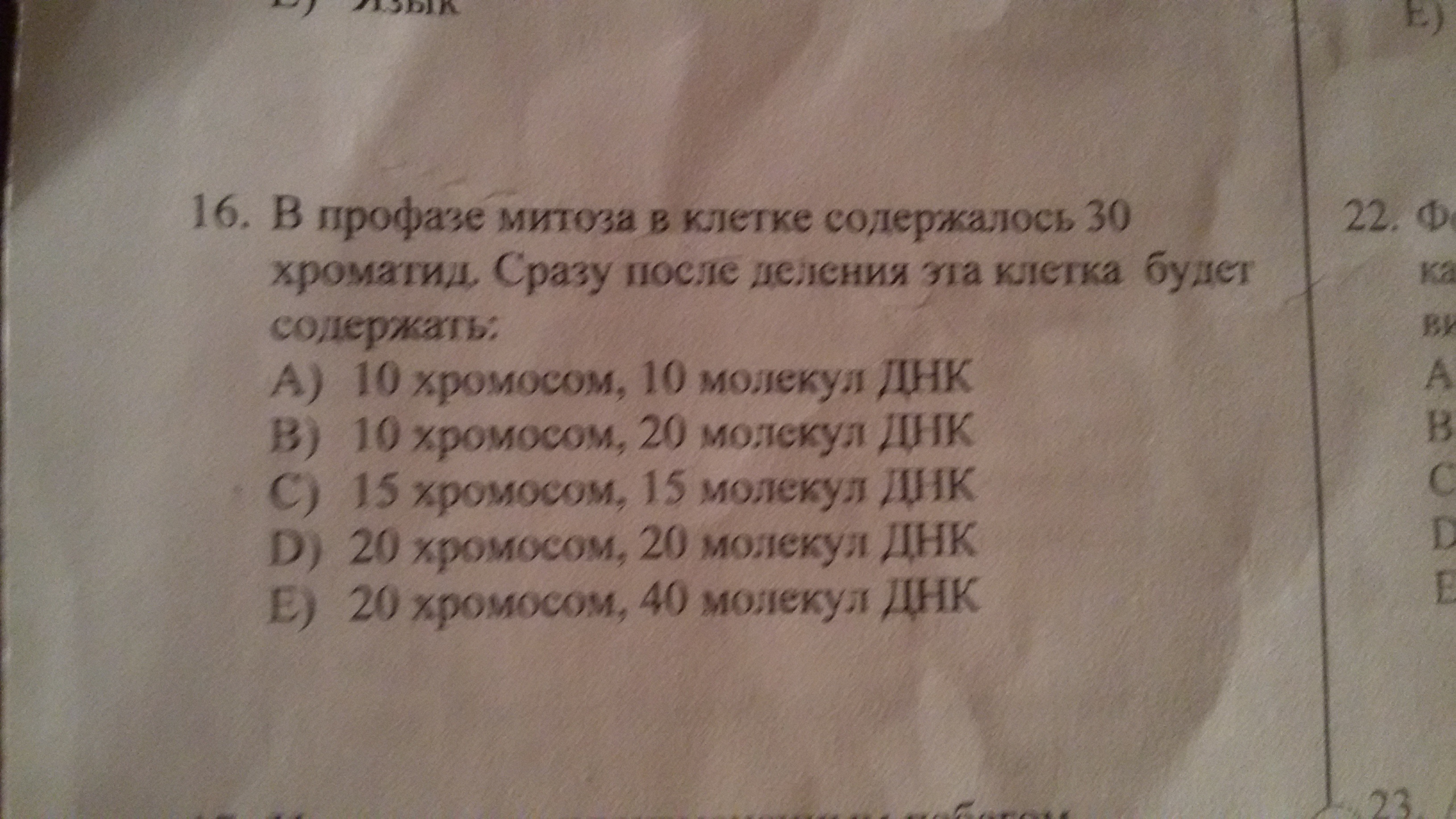 Ответ "с" -15 хромосом и молекул