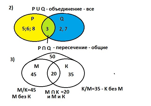 2. Даны множества Р={3, 5, 6, 8} и Q={2, 3, 7}.