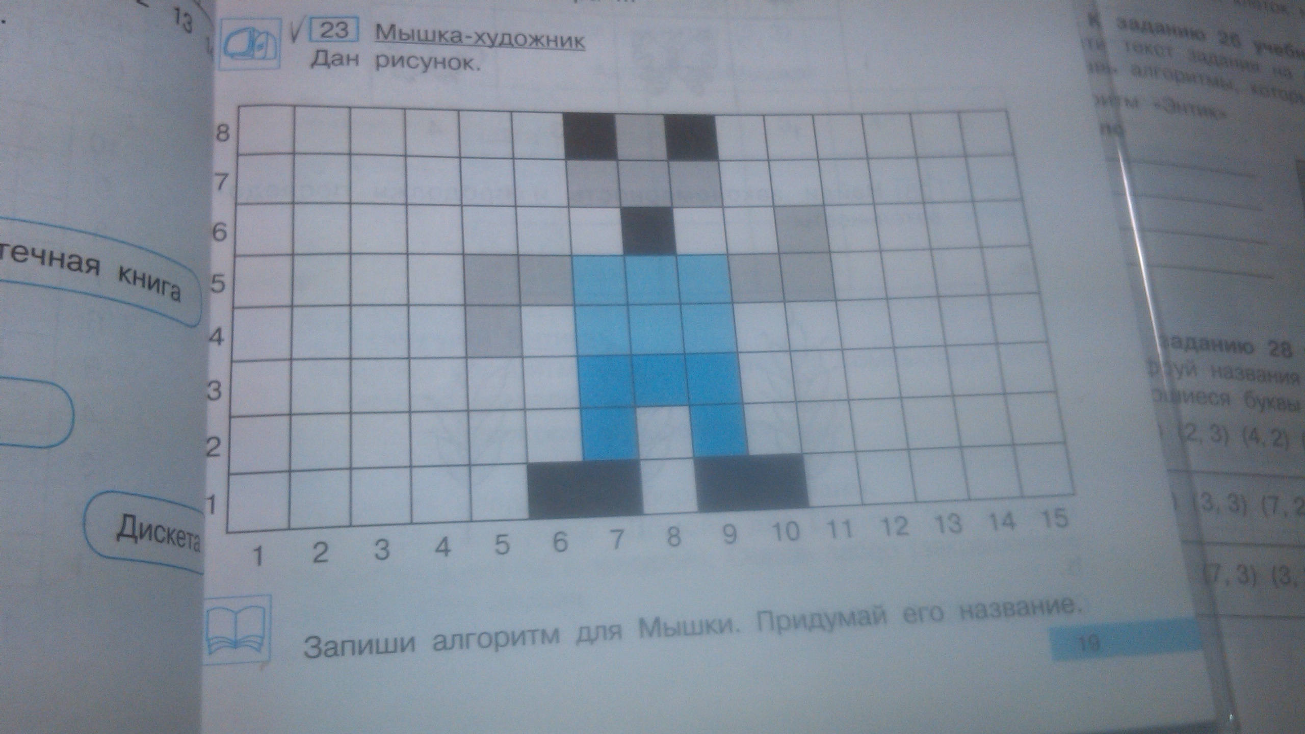 надо зайти в программу paint, потом нажать на вид и выбрать сетку потом просто берёшь и заливаешь каждую клеточку