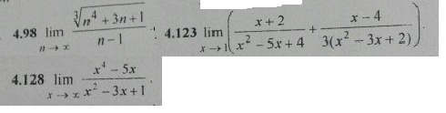 4.89)![lim_{n to infty} frac{ sqrt[3]{n^4+3n+1} }{n-1}=frac{infty}{infty} lim_{n to infty} frac{ sqrt[3]{n^4+3n+1} }{n-1}=frac{infty}{infty}](https://tex.z-dn.net/?f=+lim_%7Bn+to+infty%7D+frac%7B+sqrt%5B3%5D%7Bn%5E4%2B3n%2B1%7D+%7D%7Bn-1%7D%3Dfrac%7Binfty%7D%7Binfty%7D)