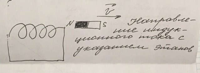 3) По правилу Ленца индукционный ток в катушку должен мешать убыванию поля магнита, а значит магнитное поле индукционного тока совпадает с полем магнита ( влево).
