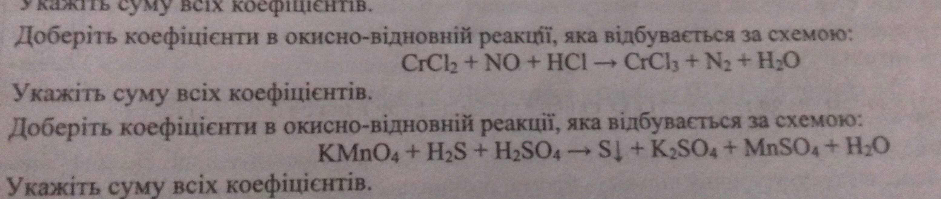 4CrCI₂+2NO+ 4HCI = 4CrCI₃ +N₂ + 2H₂O