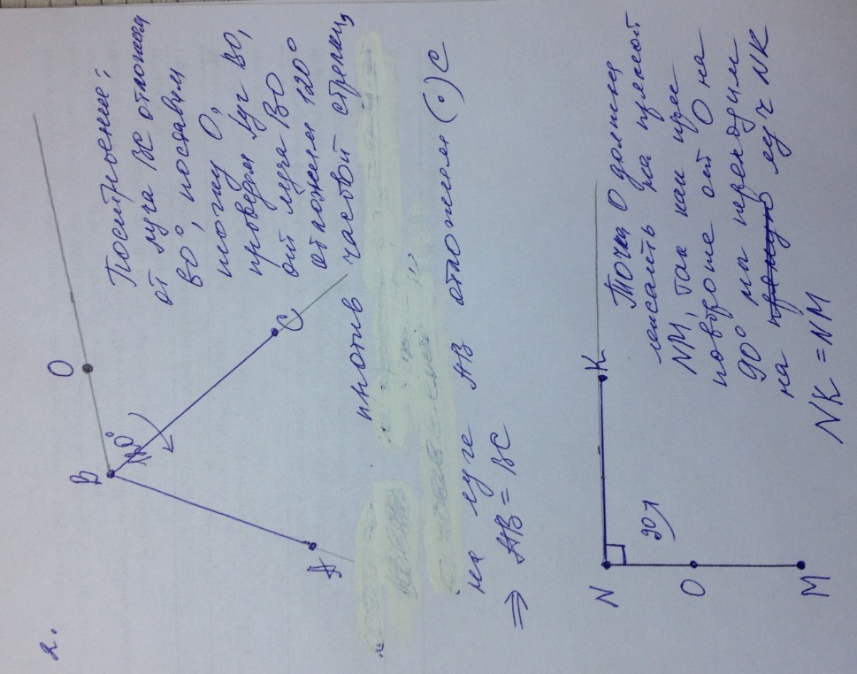 3) На рисунке 23.13 изображены два равных перпендикулярных отрезка МN и NK. Найти точку О такую, чтобы отрезок NK был образом отрезка МN при повороте вокруг точки О по часовой стрелке на угол 90°.