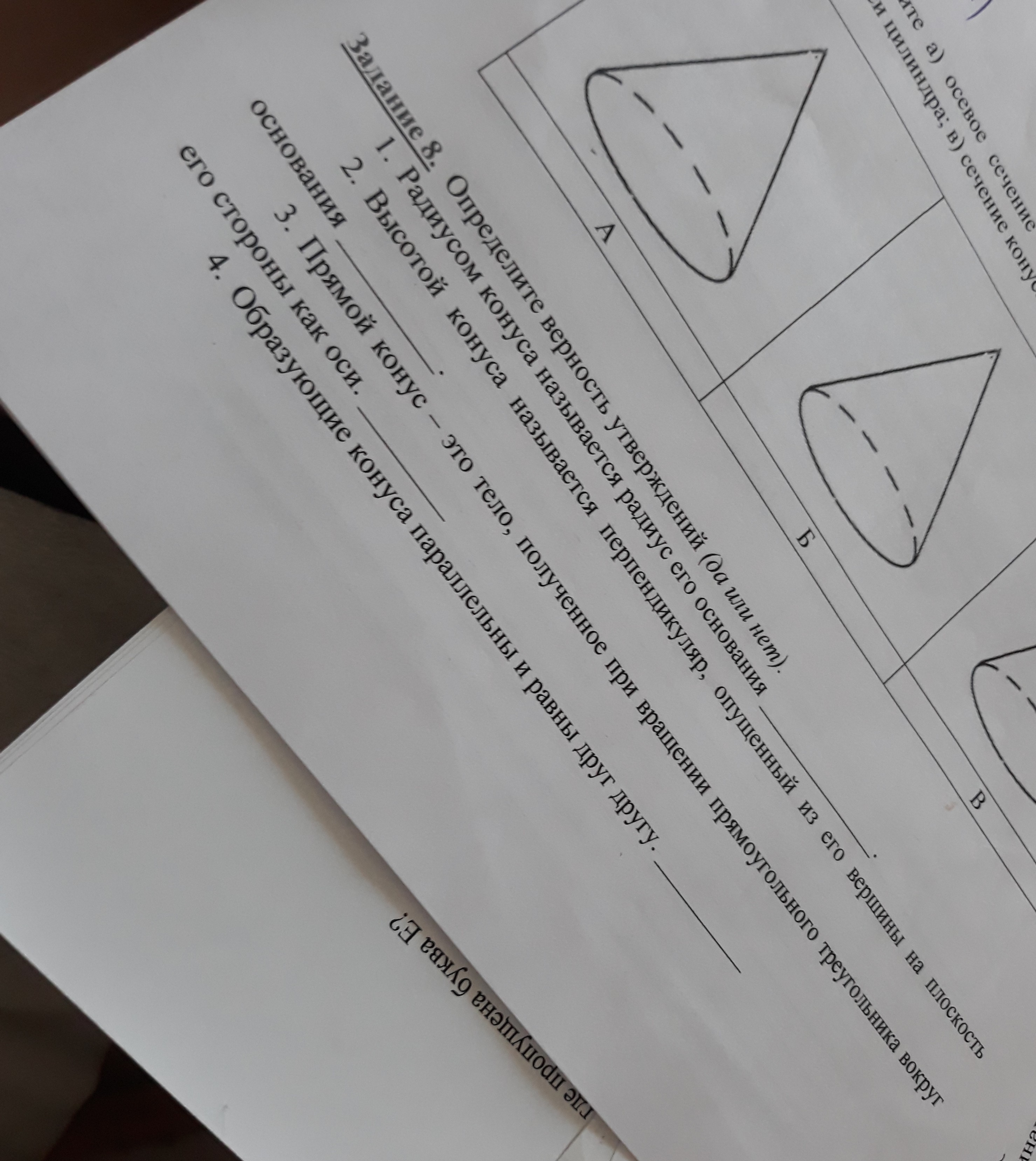 помогите , конус задание 8 , Определить верность утверждений Да,Нет
