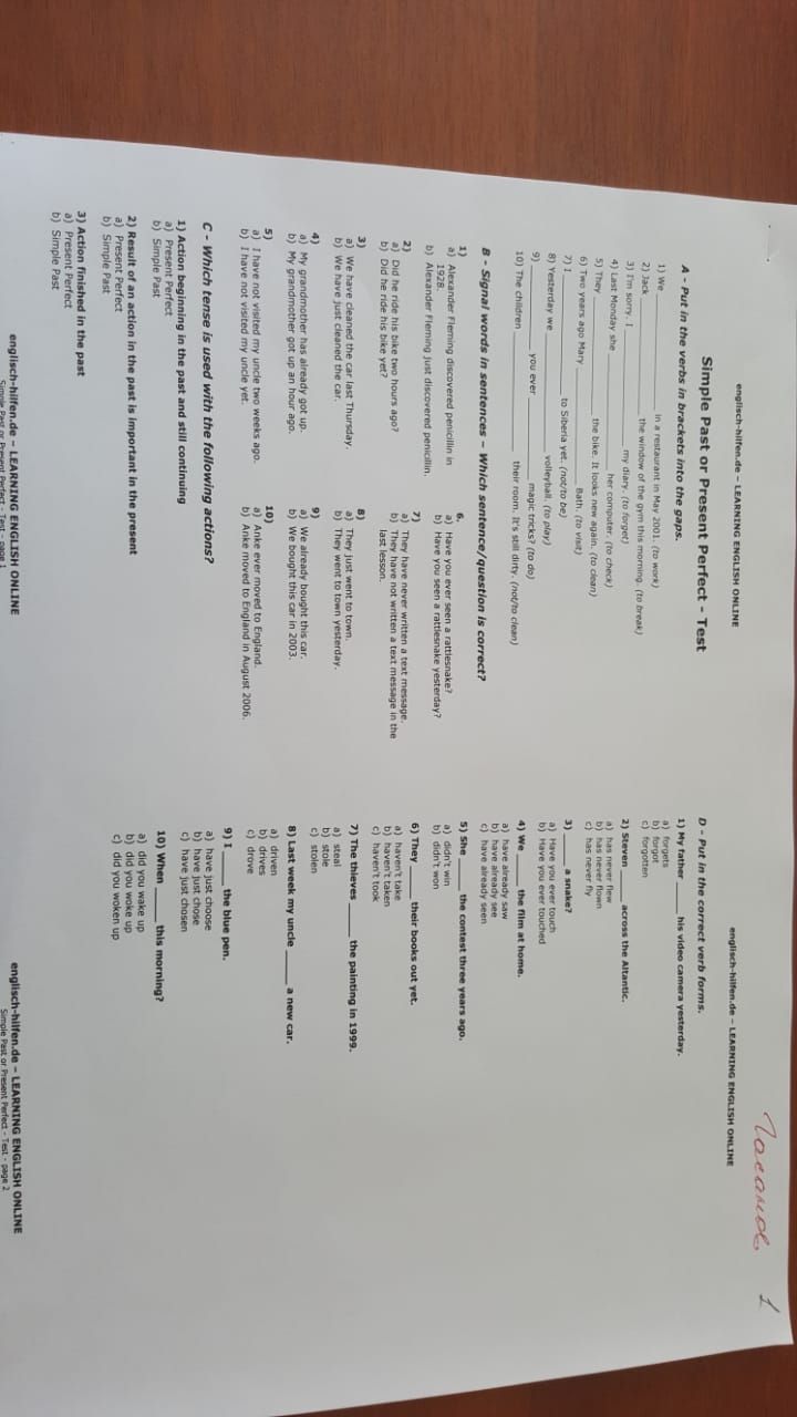 1 задание: 1.worked 2 has breaken 3 has forgotten 4checked 5have cleaned 6visited 7have not been 8played 9have you ever done 10 have not cleaned
