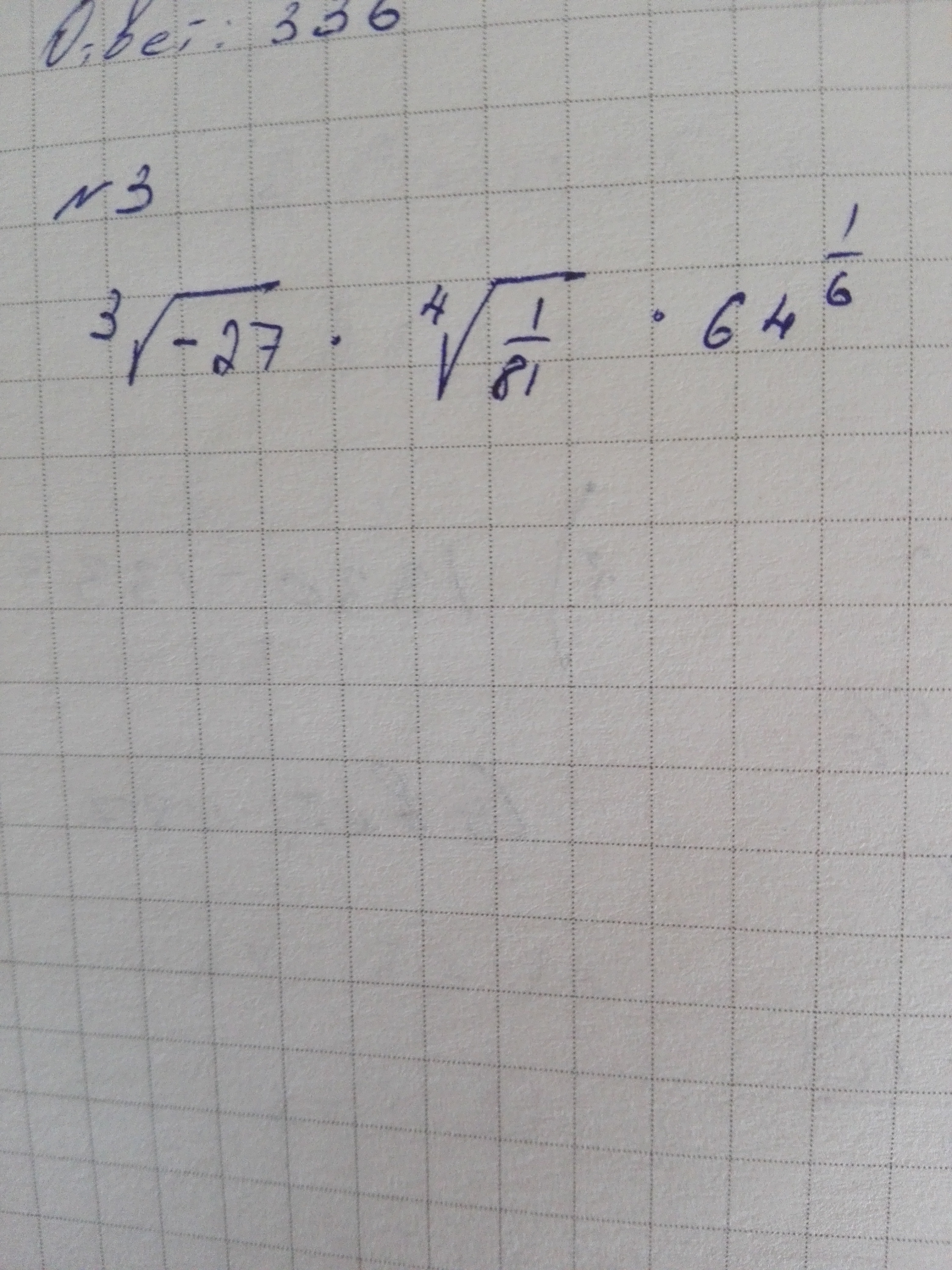 ∛-27=∛(-3)³=-3, 1/81^(1/4)=1^(1/4)/81^(1/4)=1/(3⁴)^(1/4)=1/3, 64^(1/6)=2⁶^(1/6)=2. Тогда ∛-27*1/81^(1/4)*64^(1/6)=-3*1/3*2=-2. Ответ: -2.