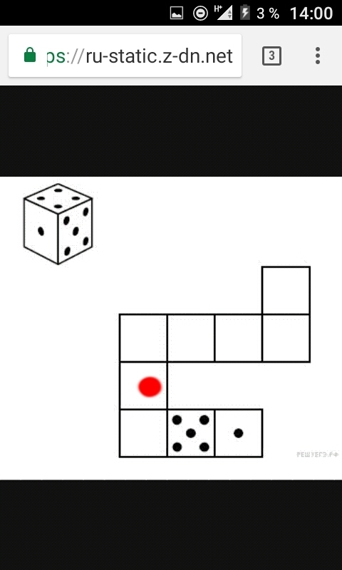 игральный кубик прокатили по столу.на рисунке изображён след кубика.отметьте на рисунке место в котором грань с четырьмя точками соприкасалась со столом.
