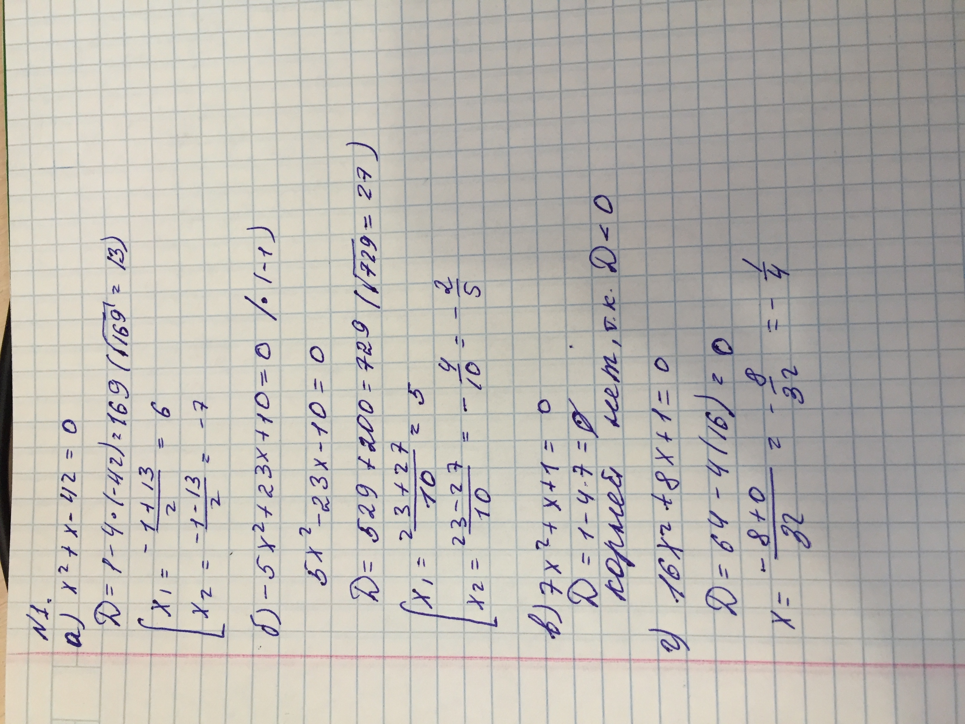 а нахождение корней x=-b+-D/2a