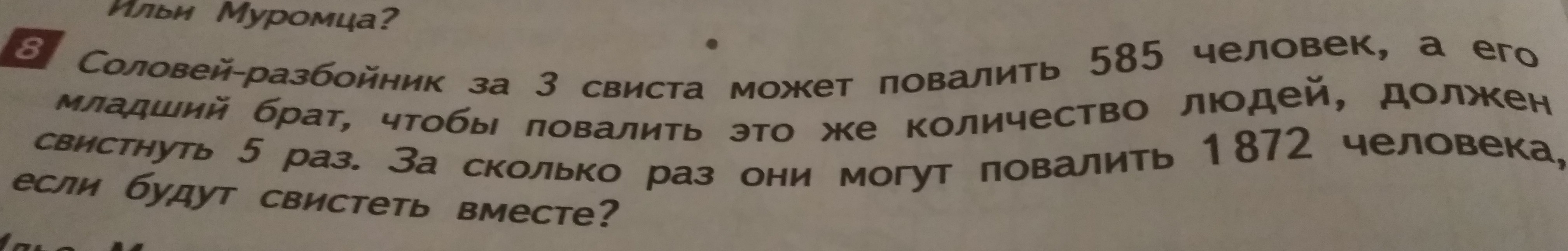 585/3=195 человек за один свист может повалить Соловей Разбойник