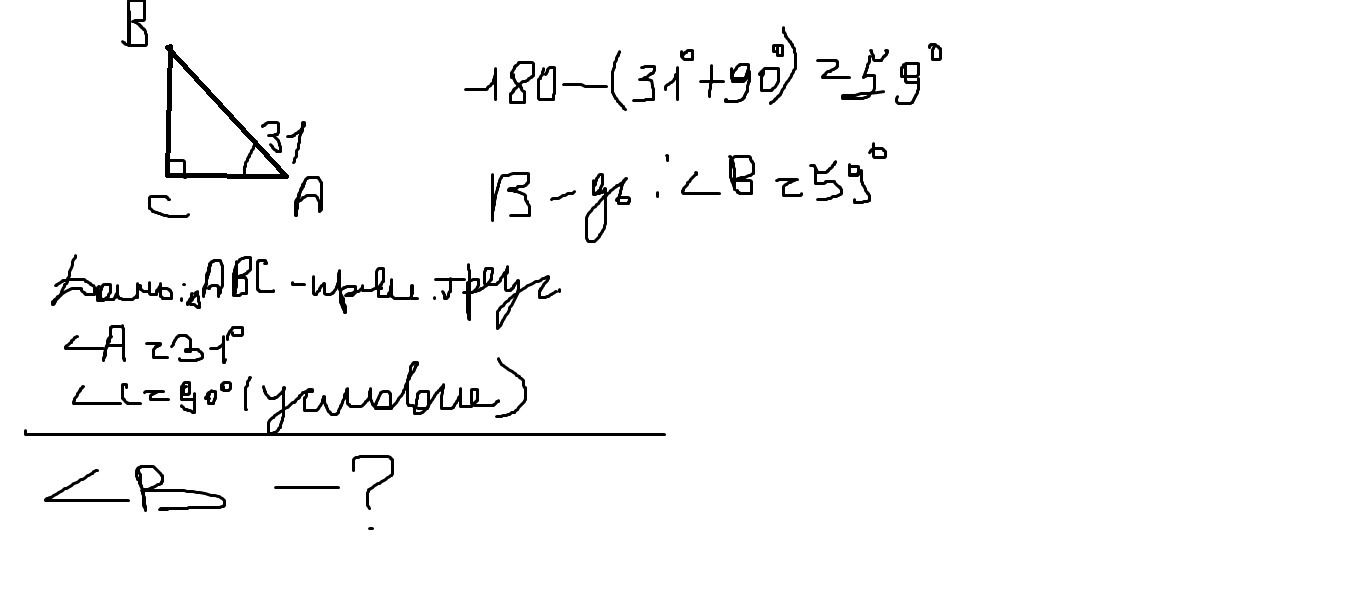 В прямоугл. треугольника АВС <С прямой, <А=31° найти <С