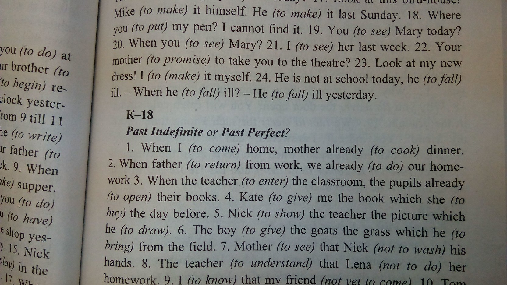 выбрать правильную форму слова времени Past Perfect или Past Indefinite