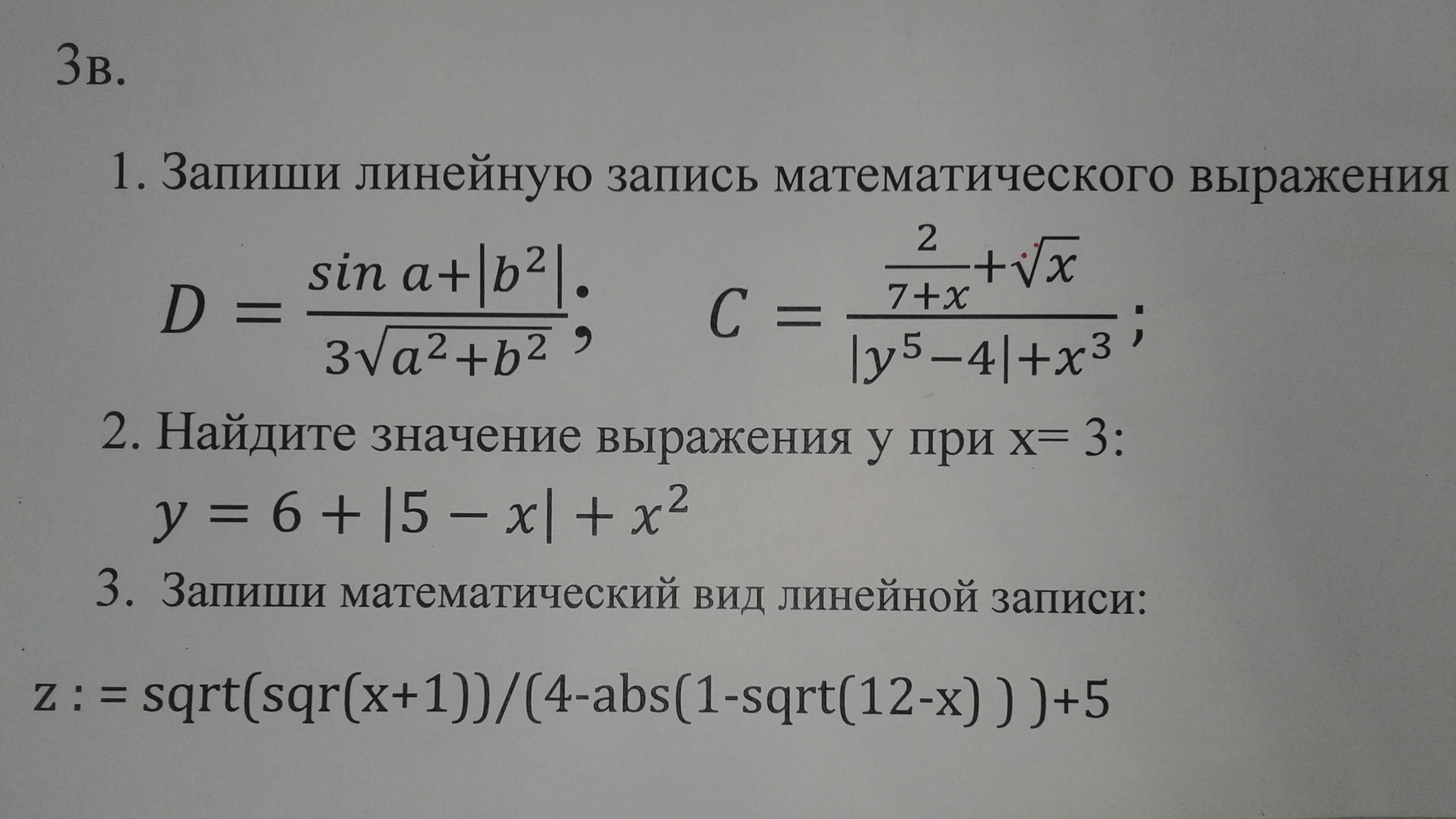 1. D:= (sin(a)+abs(sqr(b)))/(3*sqrt(sqr(a)+sqr(b));