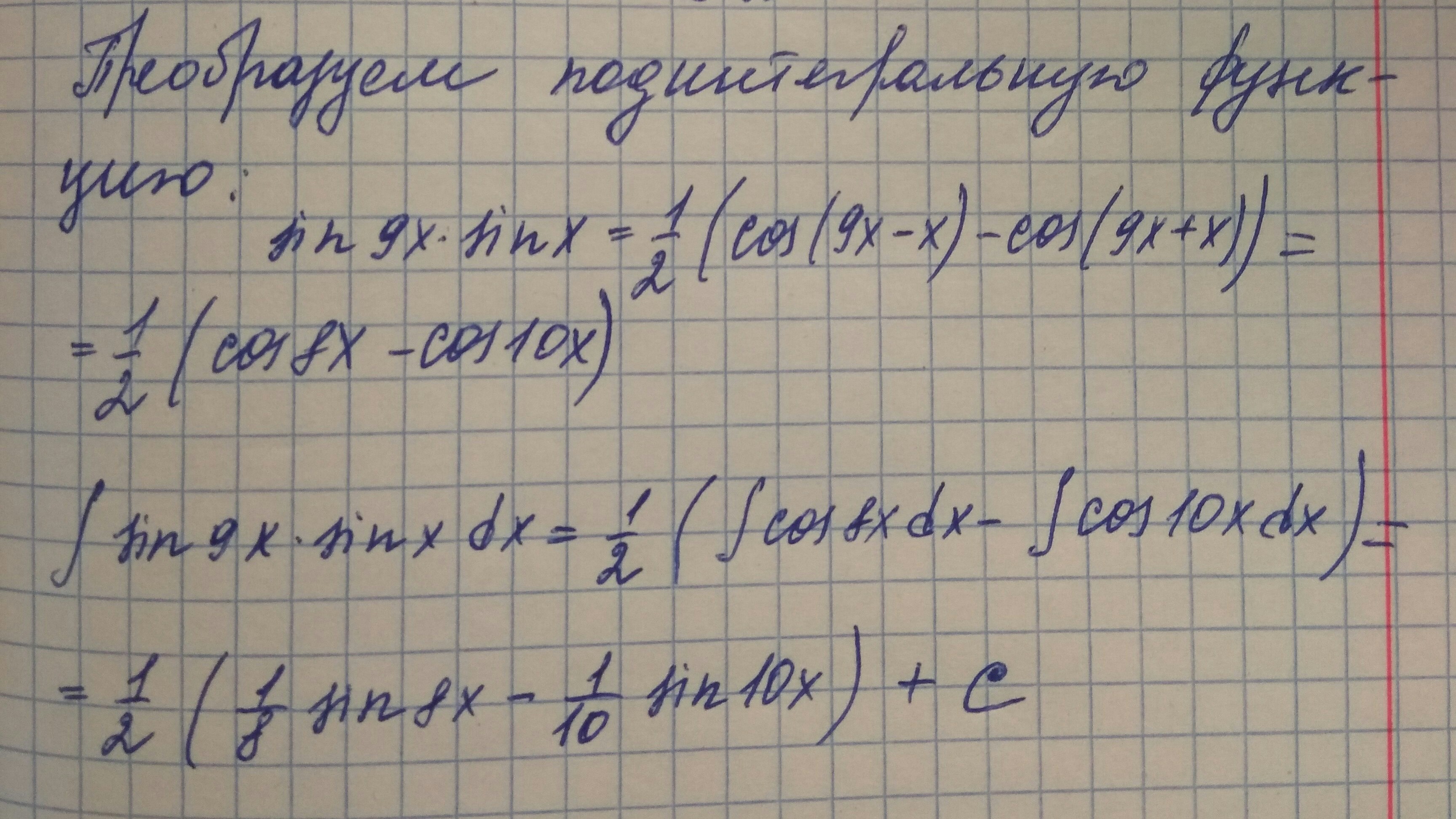 Для преобразования использовали формулу произведение синусов:
