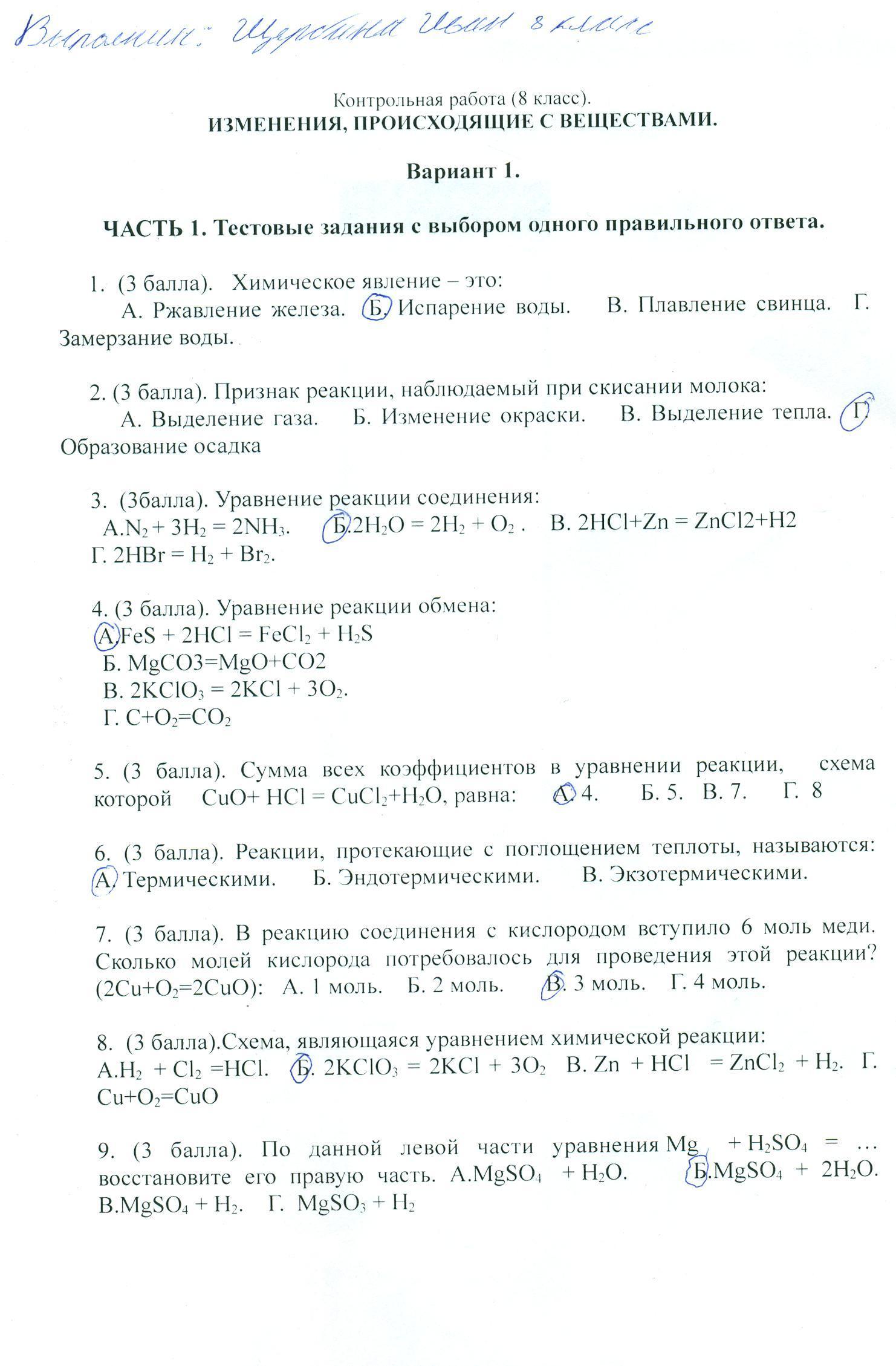 5- Б CuO + 2 HCl = CuCl2 + H2O