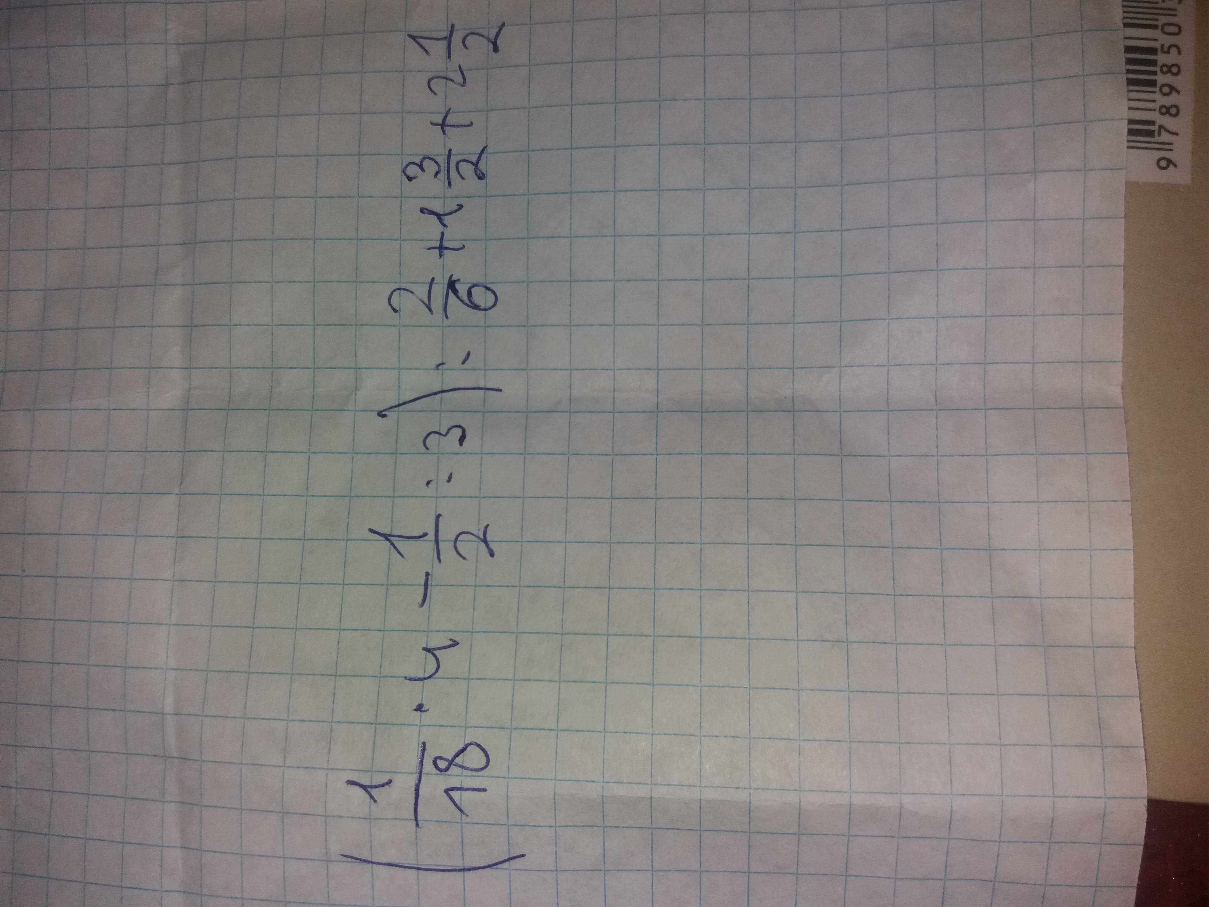 (1/9*2-1/2*1/3)*6/2+3/2+1=(2/9-1/6)*3+3/2+1=1/18*3+3/2+1=1/6+3/2+1=8/3 либо 2 целых 2/3