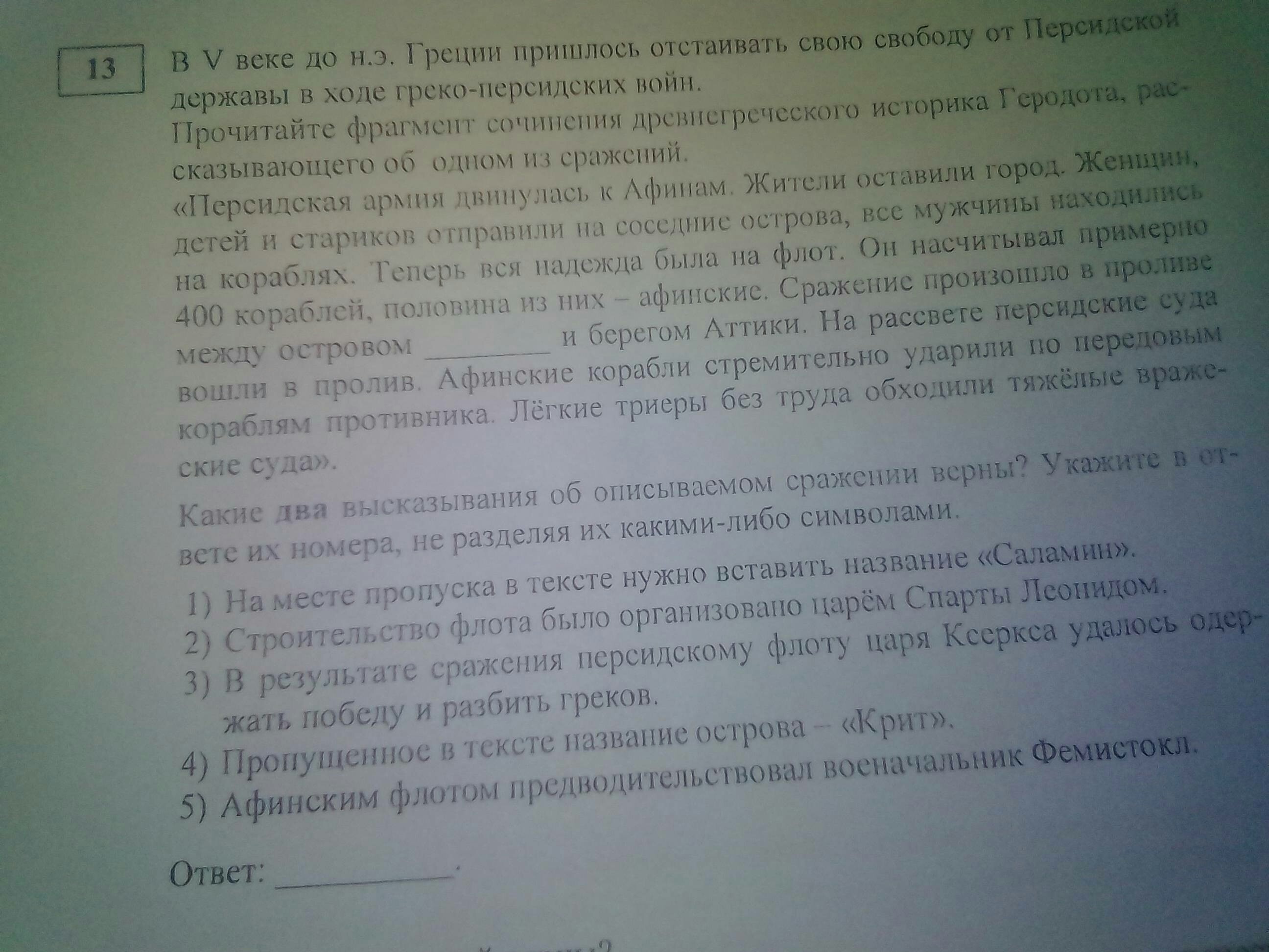 Остров Саламин (то есть 1 вариант) и командовал флотом Фемистокл (то есть 5 вариант) Ответ:1 и 5