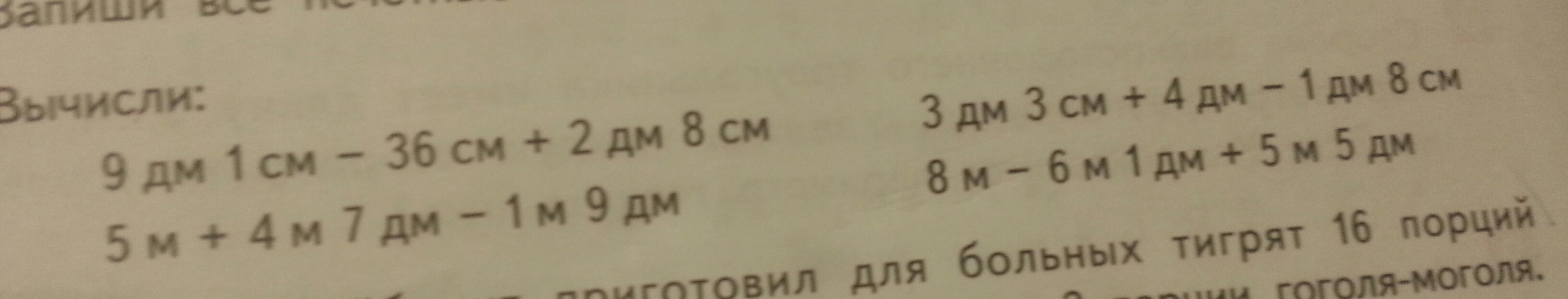 8м - 6м 1дм + 5м 5дм = 80дм - 61дм + 55дм = 74дм = 7м 4дм