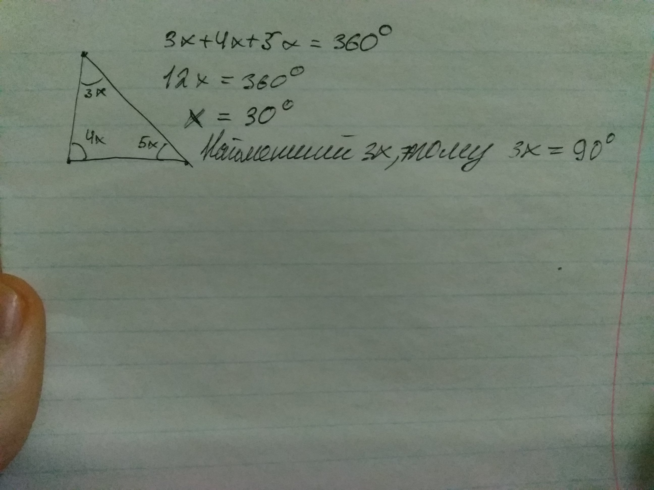 Градусні міри кутів трикутника відносяться як 3 : 4 : 5. Знайдіть градусну міру найменшого кута.