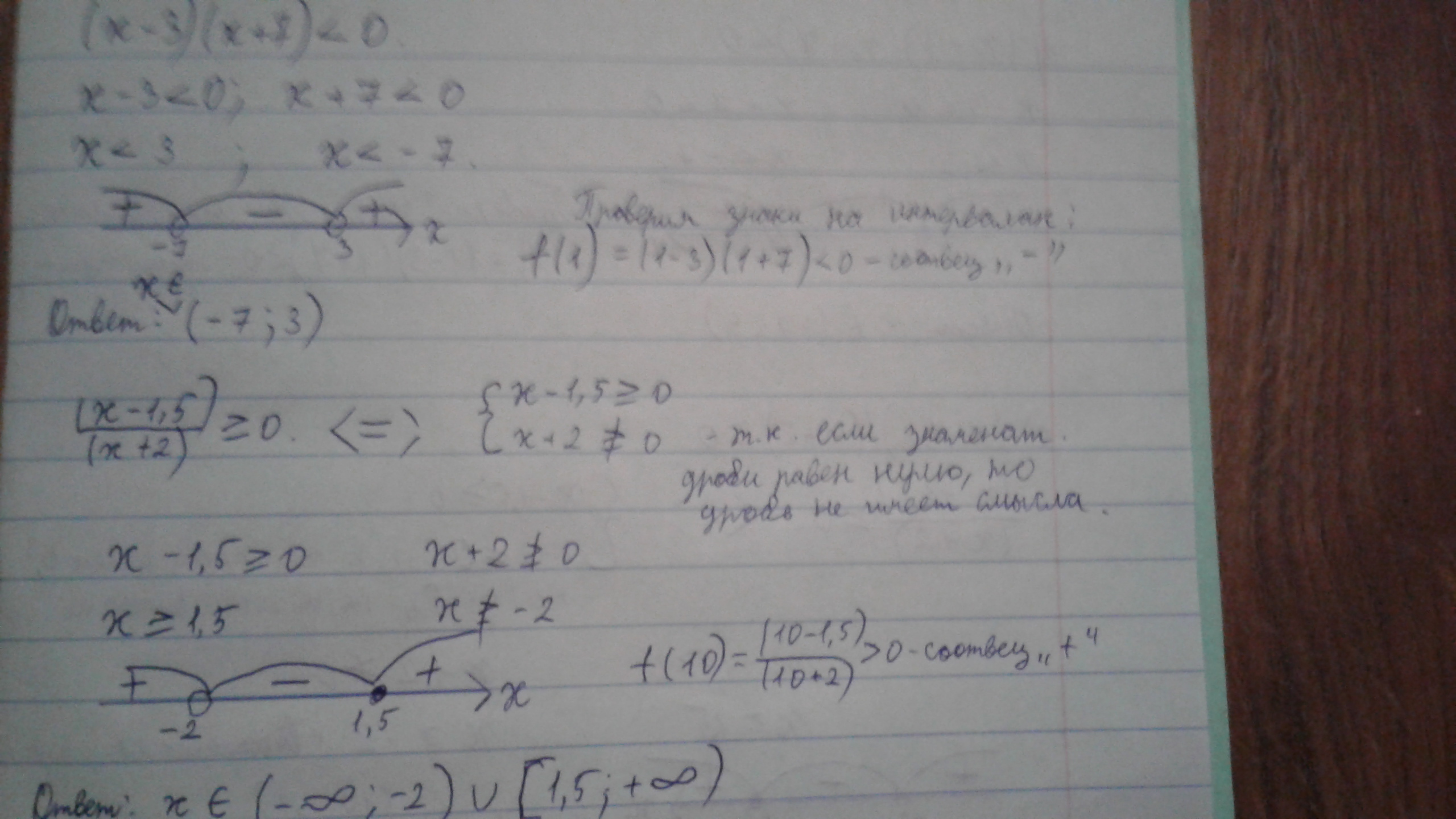 Решите неравенство методом интервалов: (х-3)(х+7)<0