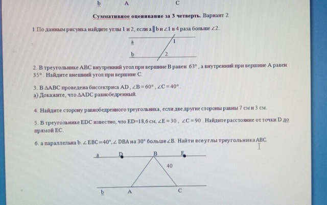 3) ∆АDC имеет основание АС,углы при основании по 40,а если угла при основании треугольника равны,то этот треугольник равнобедренный.