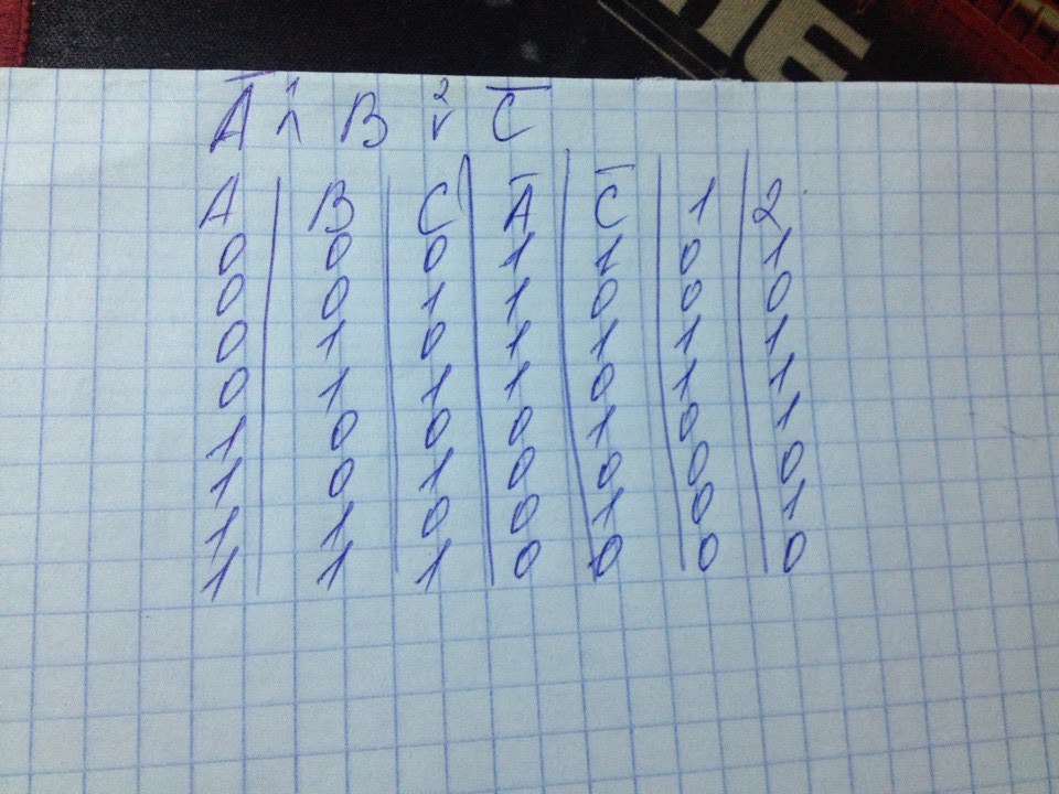 составить таблицу истинности для логической функции F(A,B,C)=(не А) и В или (не С)