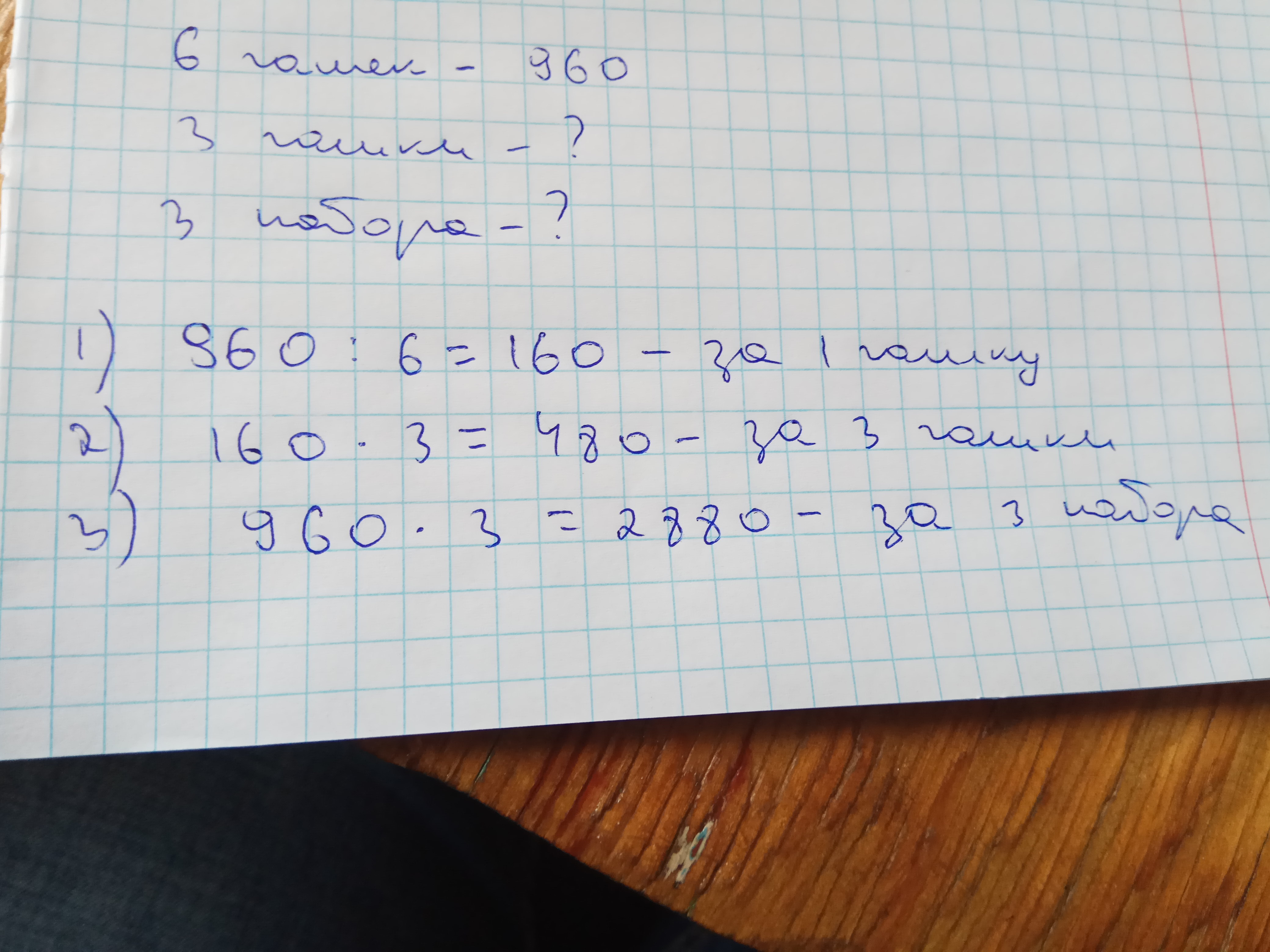 за набор из 6 чашек заплатили 960 тенге сколько нужно заплатить за 3 такие чашки за 3 таких наборов
