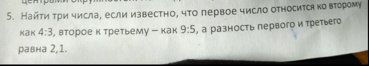 Нужно 9:5 разделить на 4:3 и умножить на 2,1, так нас учили
