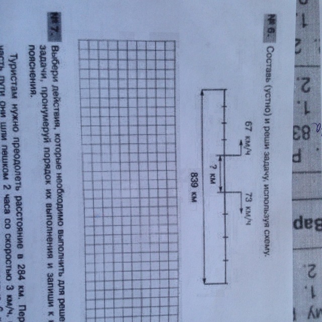Два автомобилиста выехали из 2х точек в разные направления скорость первого 67км/ скорость второго 73 км/ч расстояние автомобилей после окончания движения составило 839км. Какое расстояние было между точками при выезде?