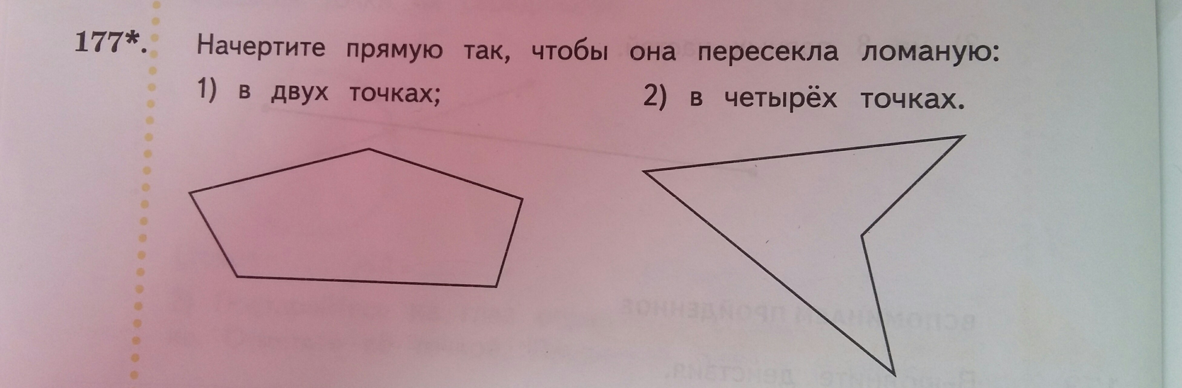 Начертите прямую так чтобы она пересекала ломаную в 2 точках в 4 точках
