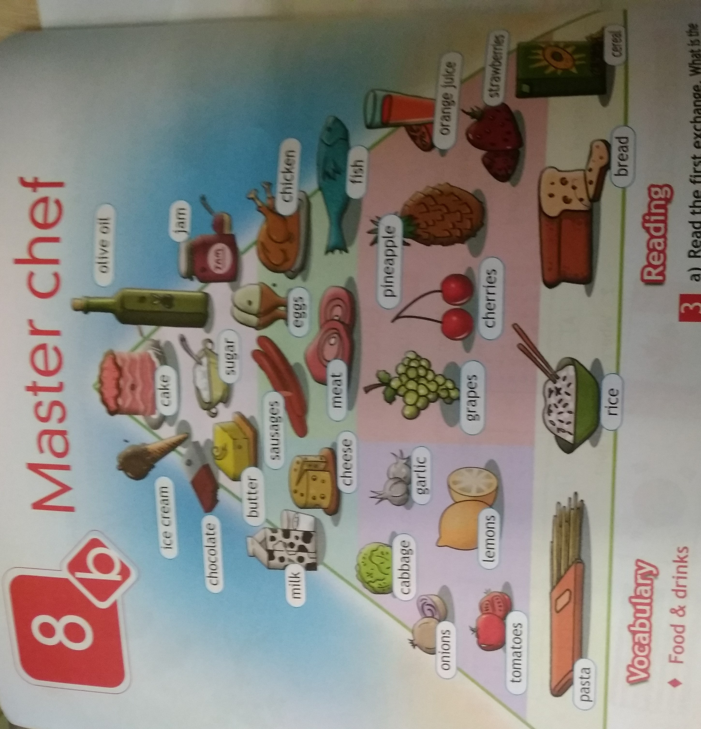 неисчисляемые: ice cream, chocolate, milk, butter, jam, olive oil, rice, pasta, bread, cereal, meat, sugar, orange juice, cheese, fish, chicken, garlic , cabbage, cake