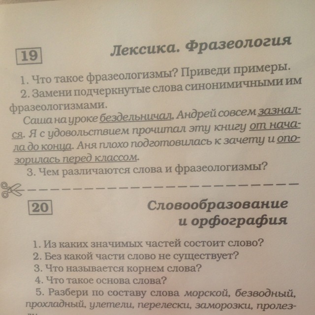 Саша на уроке валял дурака.Андрей совсем мнил о себе.Я с удовольствием прочитал книгу от корки до корки.Аня плохо подготовилась к зачету и дала маху перед классом.