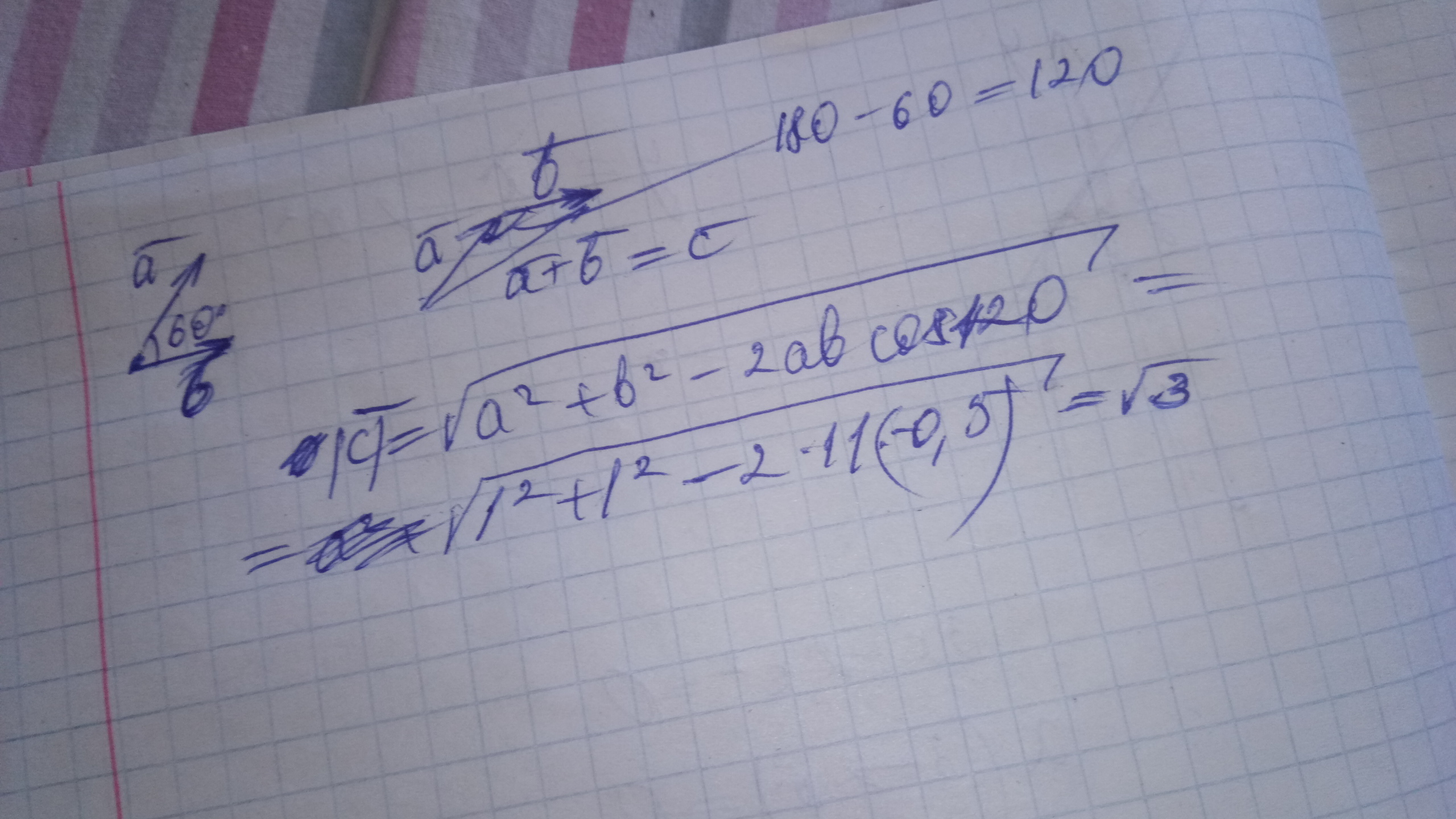 угол между единичными векторами a и b равен 60 градусов. Найдите абсолютную величину вектора a+b.
