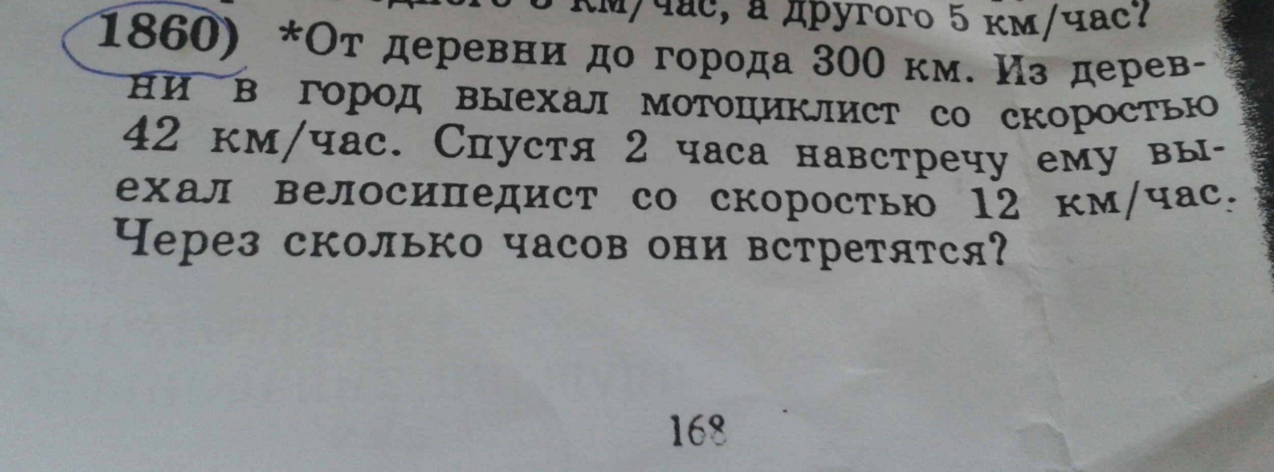 (300-42*2)/(42+12)=4 часа после выезда велосипедиста