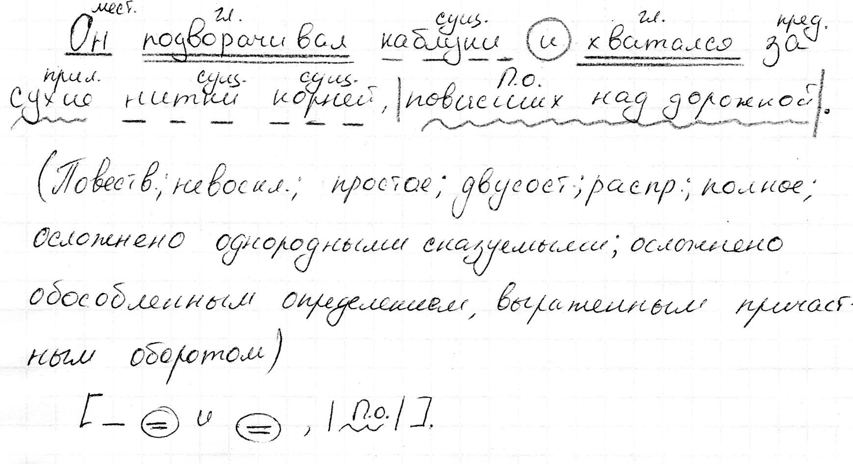 он подворачивал каблуки и хватался за сухие нитки корней , повисших над дорожкой. СИНТАКСИЧЕСКИЙ разбор предложения .ПЖЖЖЖЖЖ