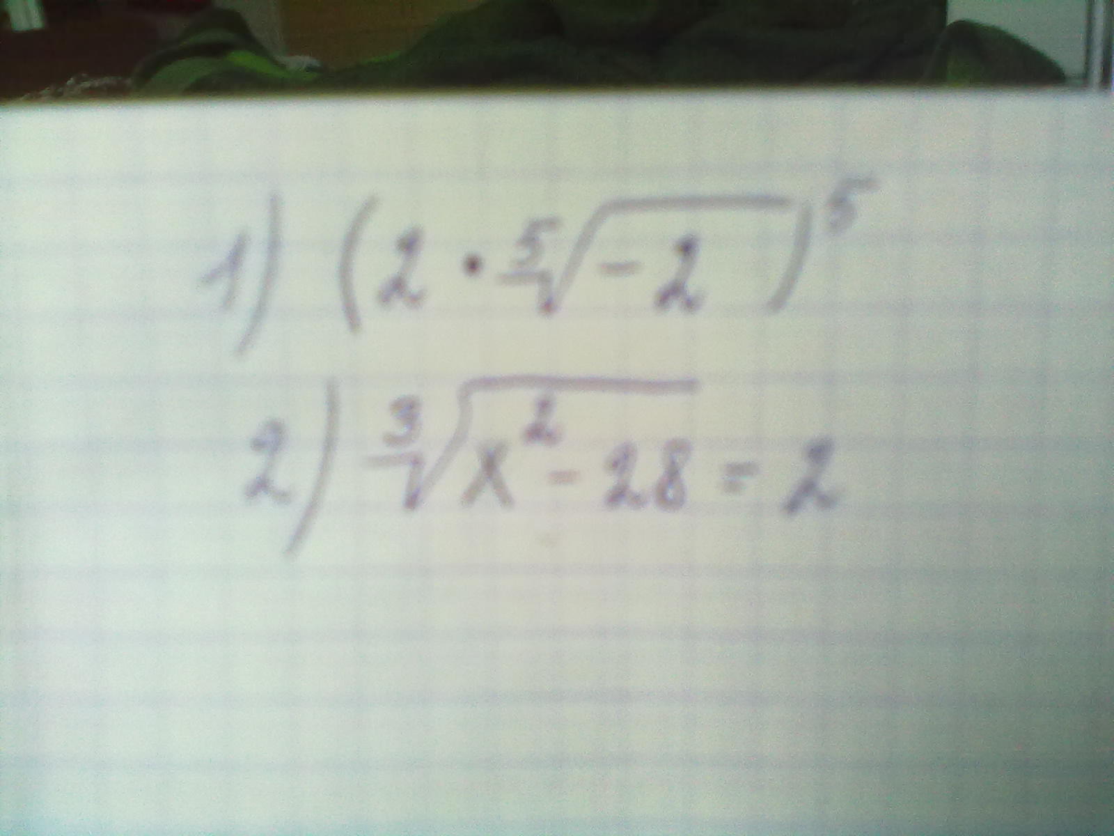 1) (2* sqrt[5]{-2} ) ^{5} =2 ^{5} *( sqrt[5]{-2} ) ^{5} =32*(-2)=-64 \  \ 2) sqrt[3]{ x^{2} -28} =2  \  x^{2} -28=8 \  x^{2} =8+28 \  x^{2} =36 \ x=+-6 \  \ 3) frac{ sqrt[3]{243} }{ sqrt[3]{-9} } = sqrt[3]{ frac{243}{-9} } =  sqrt[3]{-27} =-3