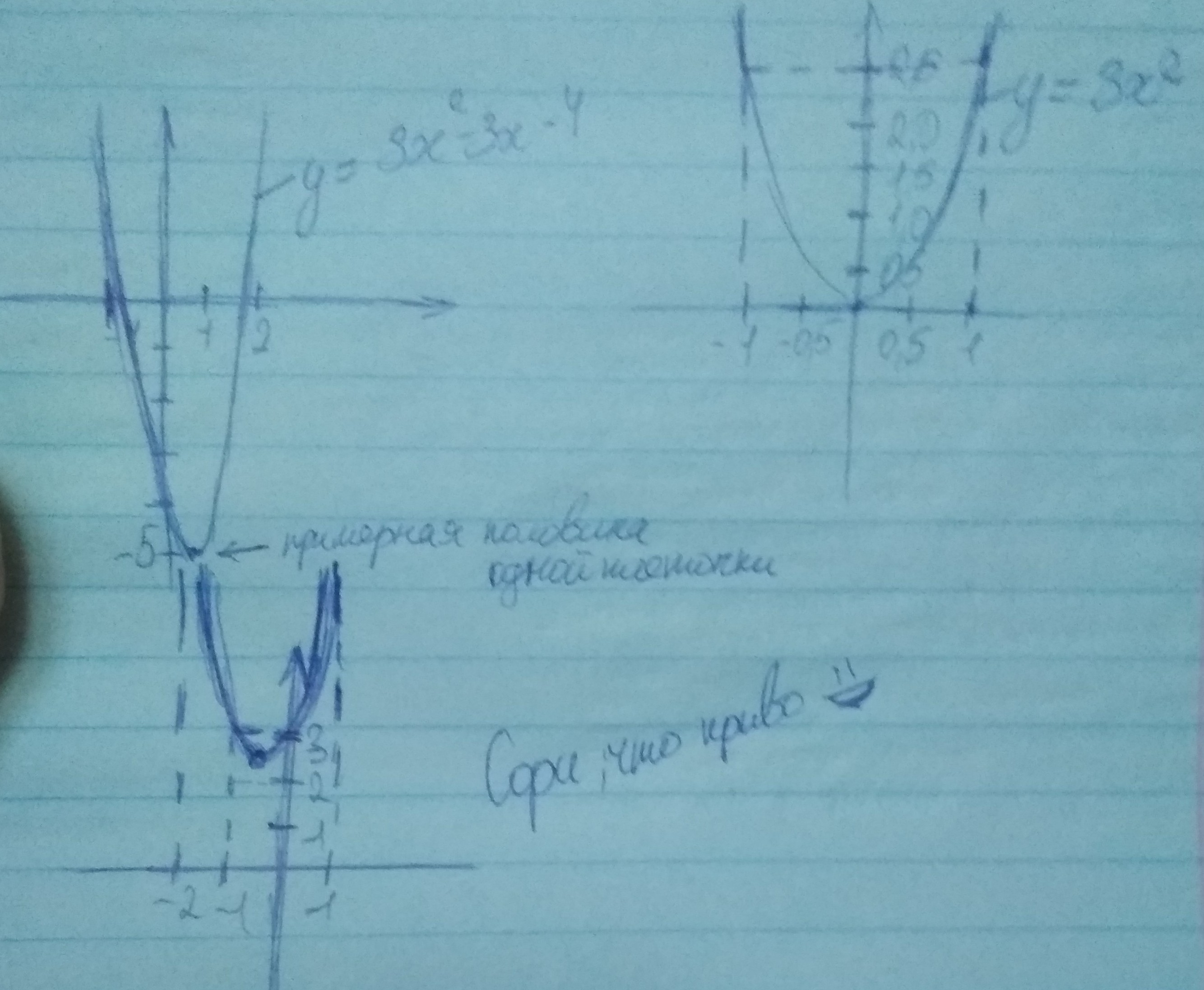 Установите соответствие между функциями и графиками а) y=3x^2-3x-4 б) y=3x^2 в) y=-3x^2+3x+4 и построить график ок