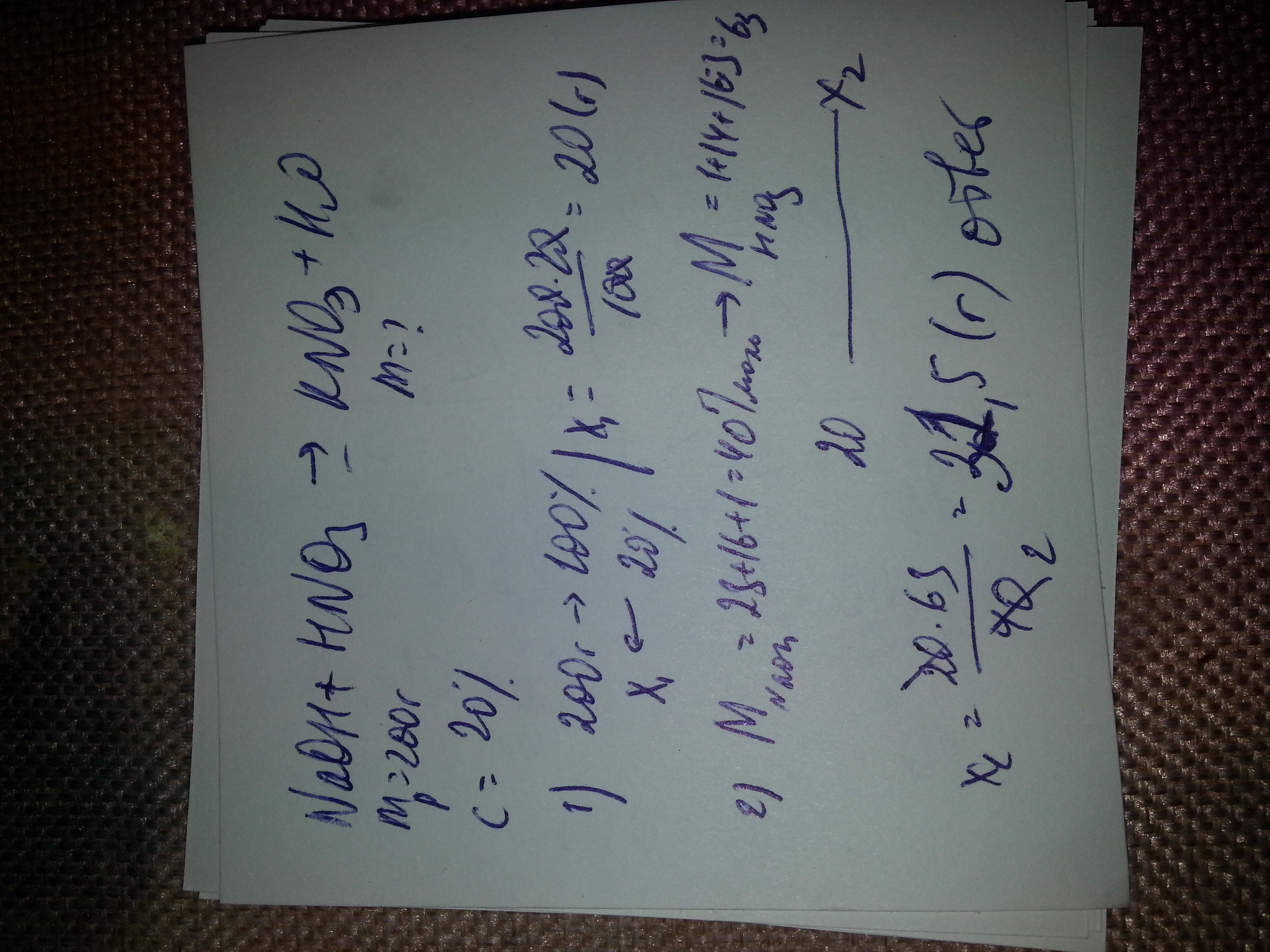 К 200 г 20% -ного раствора гидроксида натрия добавили азотную кислоту. Вычислите массу образовавшейся соли. Уравнение протекающей реакции: NaOH + HNO3 = NaNO3 + H2O