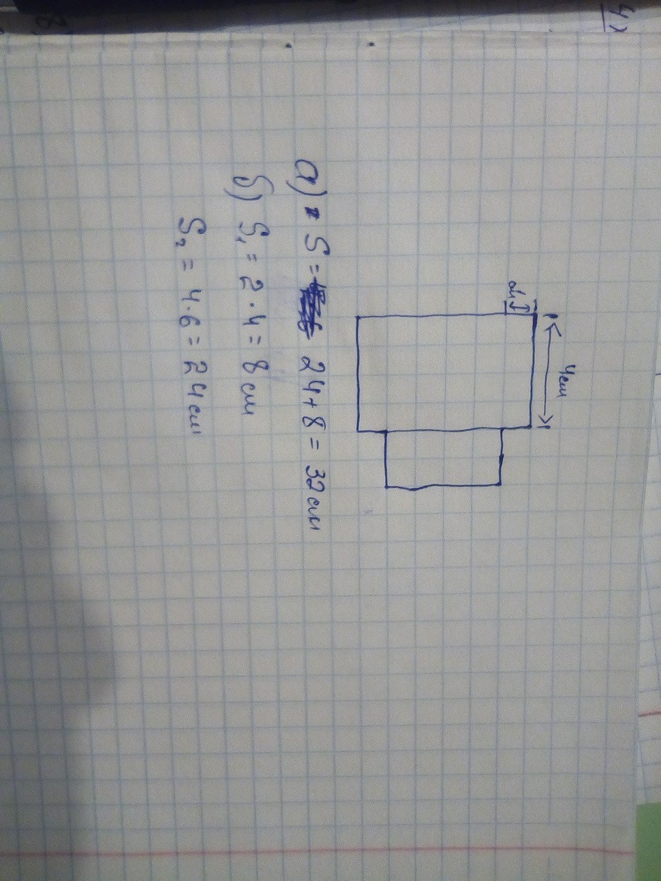 Б) S1=4×6=24см квадратных; S2=2×4=8см квадратных