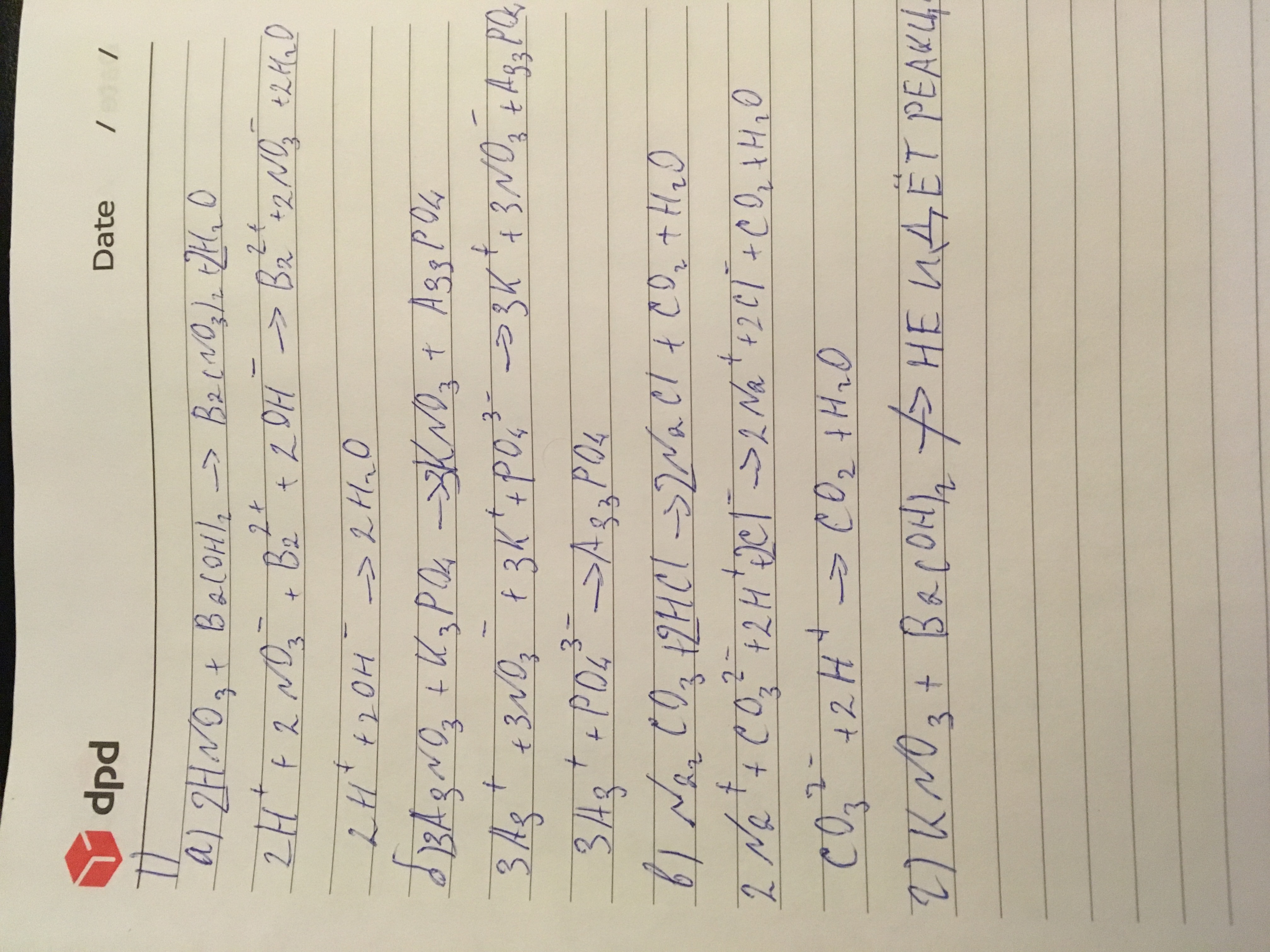 г) KNO3 + Ba(OH)2 ≠ реакция не идёт, так как продукты реакции растворимы