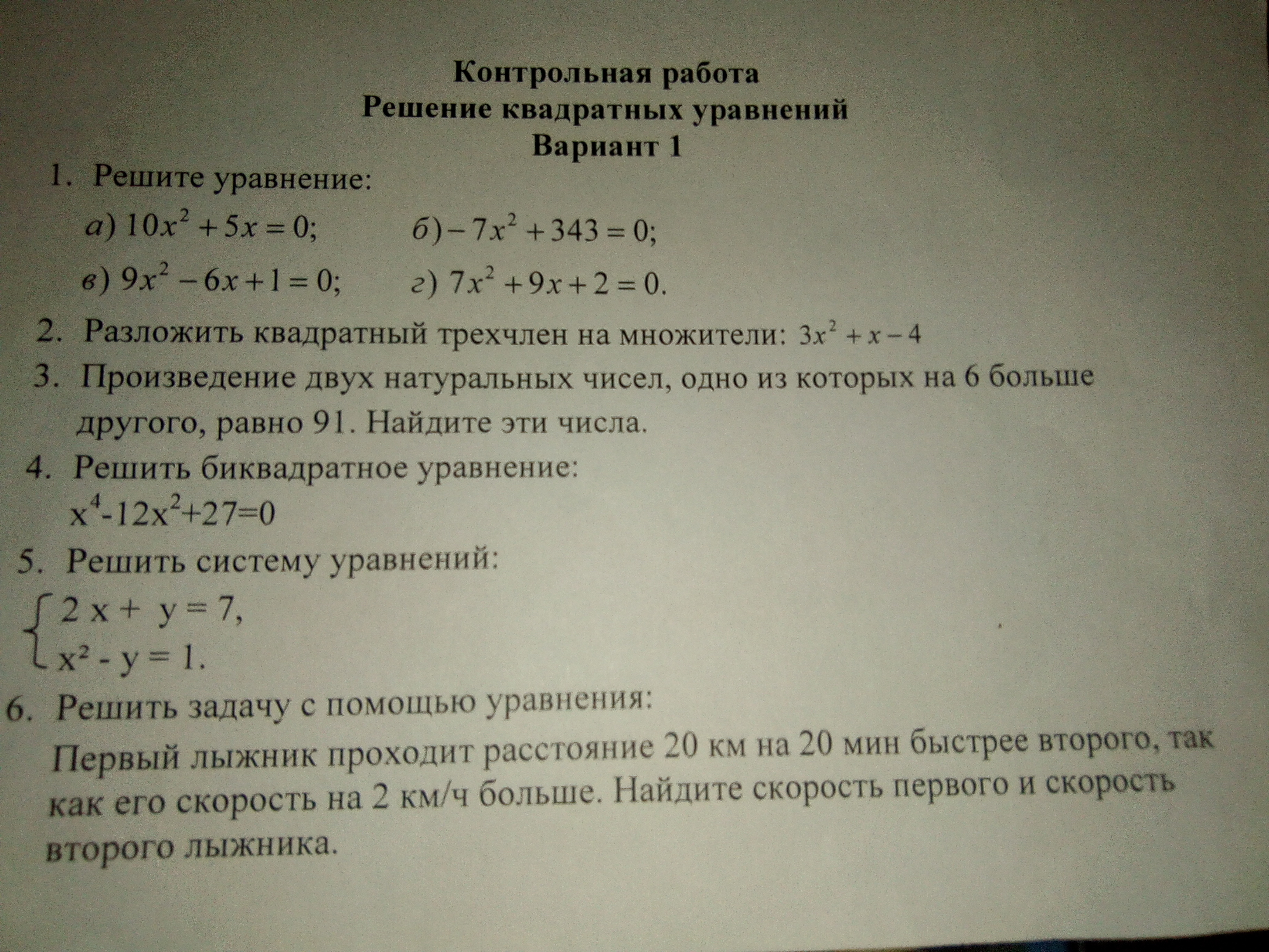 2)Произведение двух натуральных чисел, одного из которых на 6 больше другого, равно 91. Найдите эти числа.