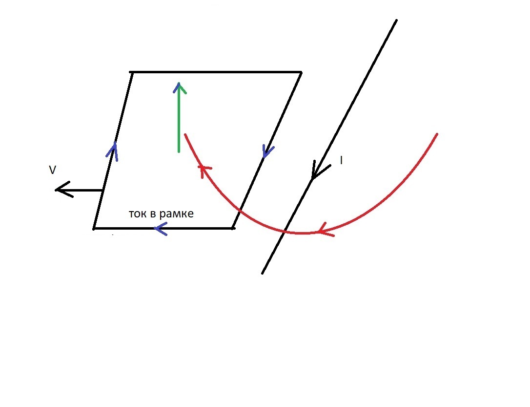 Зелёная стрелка - вектор поля, индуцированного в рамке