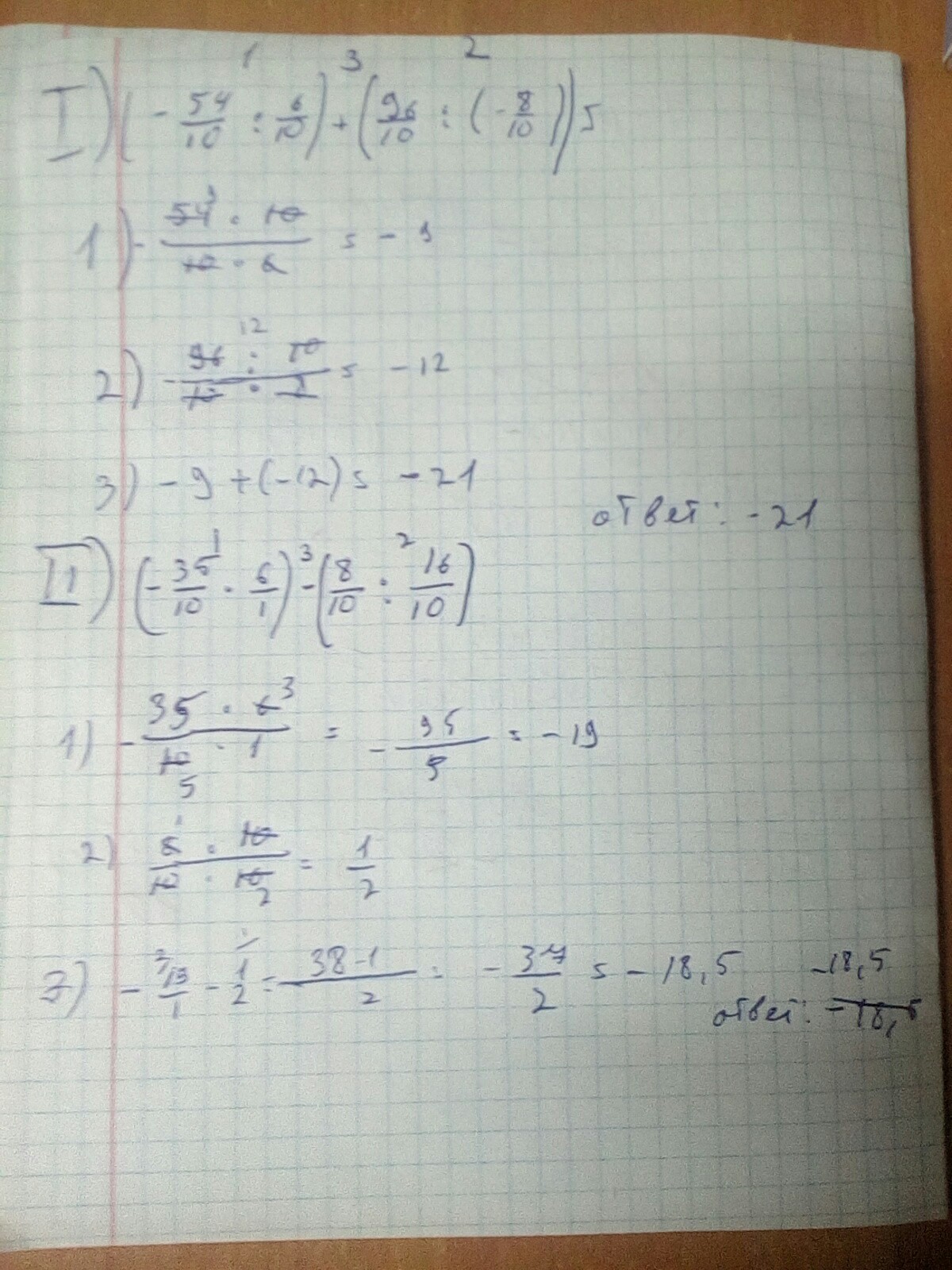 1) -5,4:0,6+9,6 : (- 0,8);2)-3,5*6 - 0,8 : (- 0,16 ); 3) -21,6 : (-0,12) +96:(8,9-11,3)