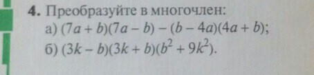 б) (3k-b)(3k+b)(b^2+9k^2)= (9k^2-b^2)(b^2+9k^2)=81k^4-b^4