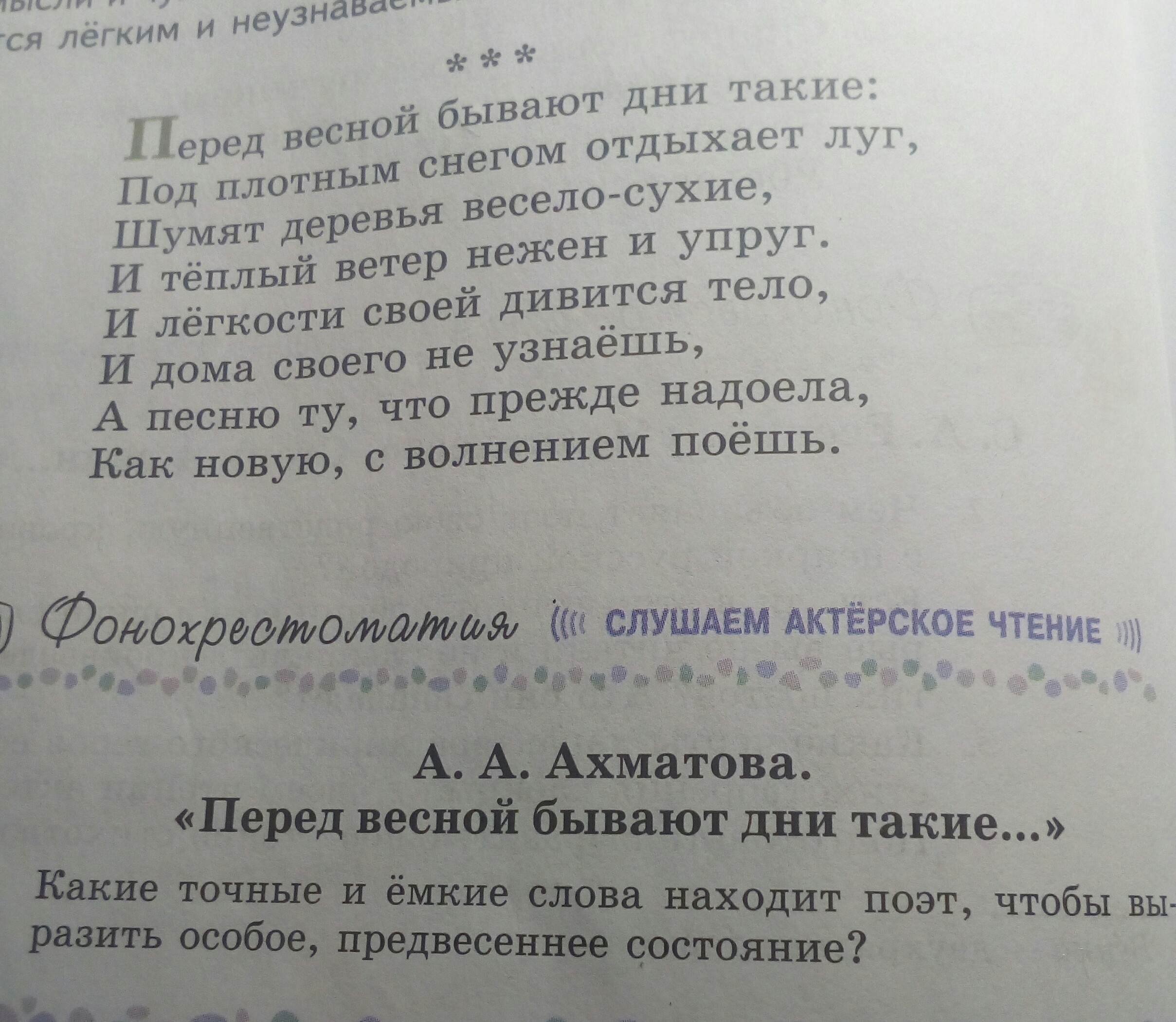 какие точные и ёмкие слова находит поэт , чтобы выразить особое, предвесеннее состояние?( стихотворение выше вопроса) срочно!