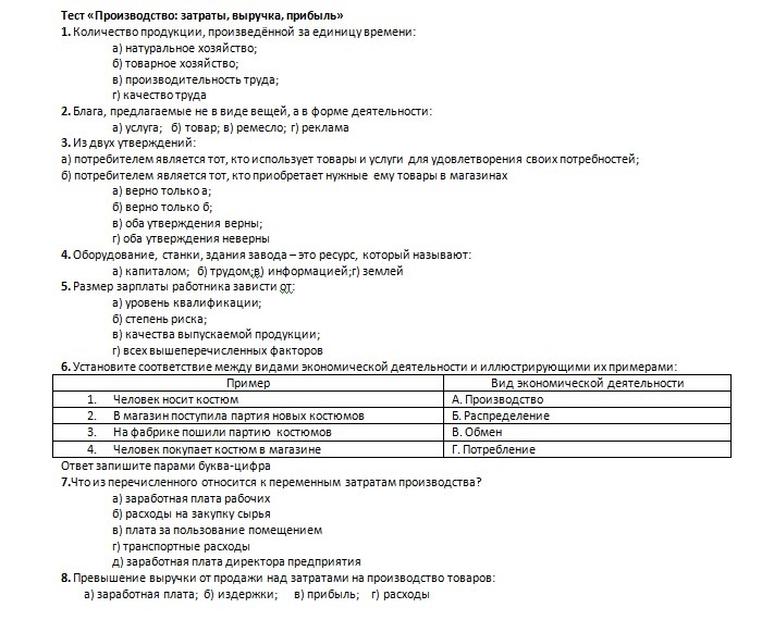 1в, 2а, 3а, 4а, 5г, 6 1г2б3а4в, 7аб, 8в