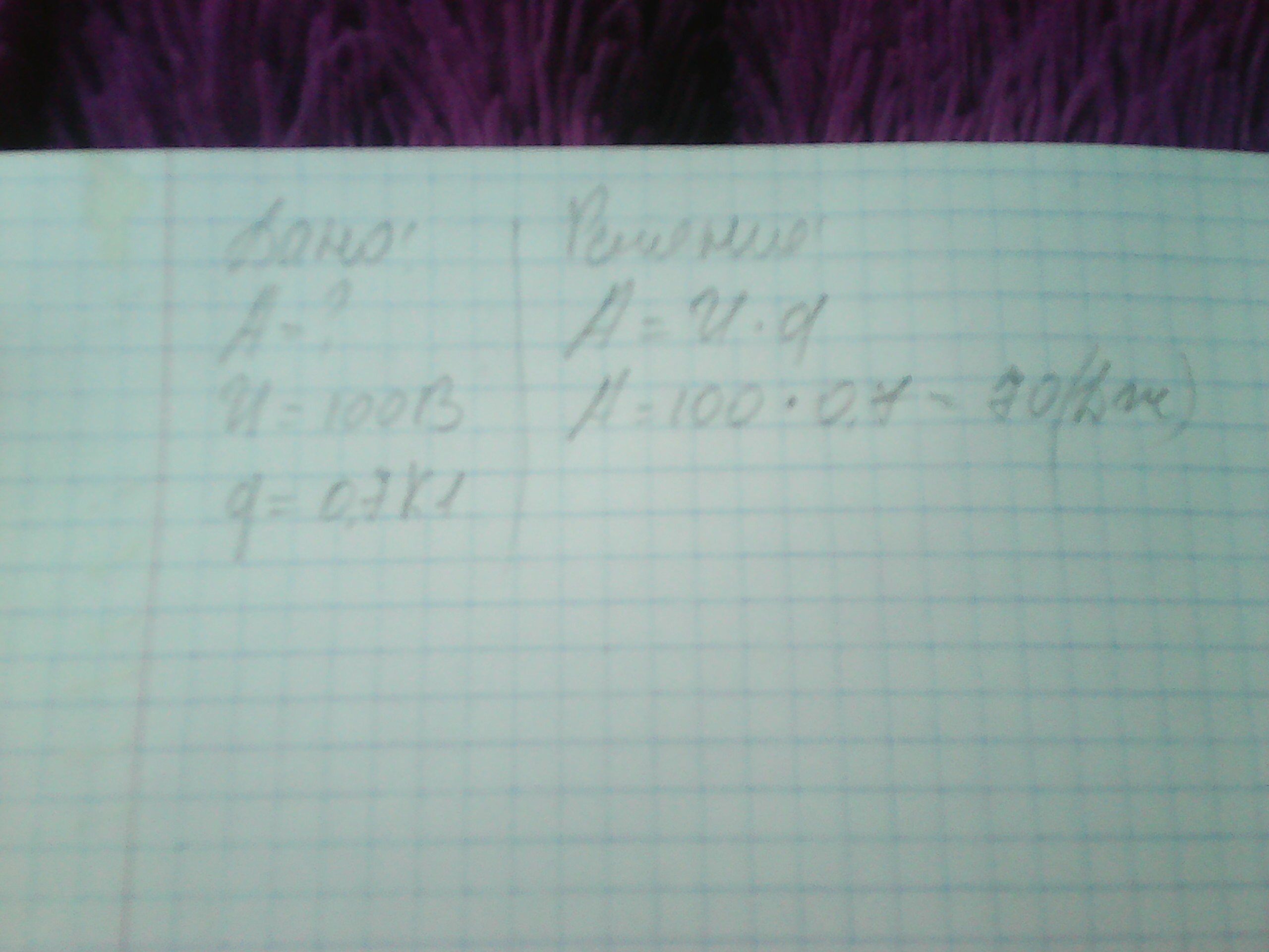 Напряжение на электроприборе 100 В. Какая совершена в нем работа, если прошел заряд, равный 0, 7 Кл?