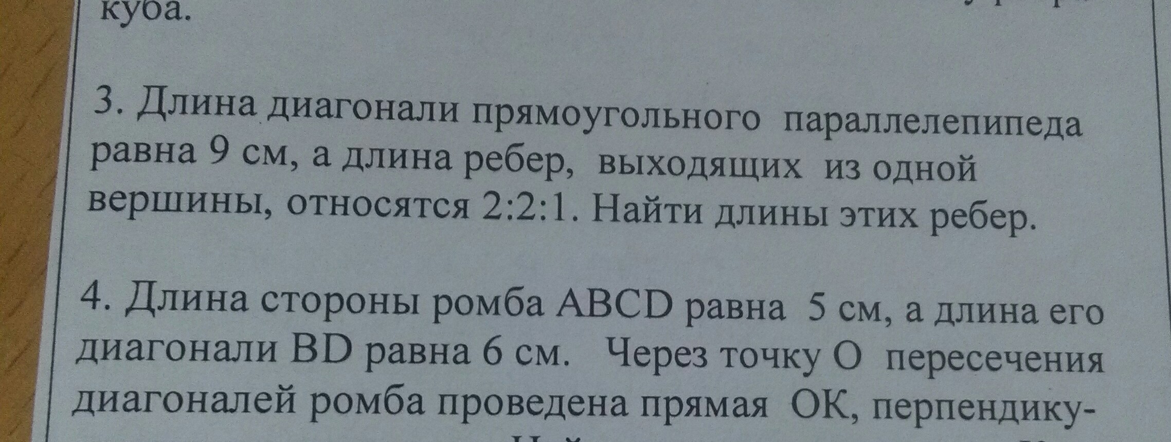 a, b, c, - измерения прямоугольного параллелепипеда(ребра, выходящие из одной вершины)