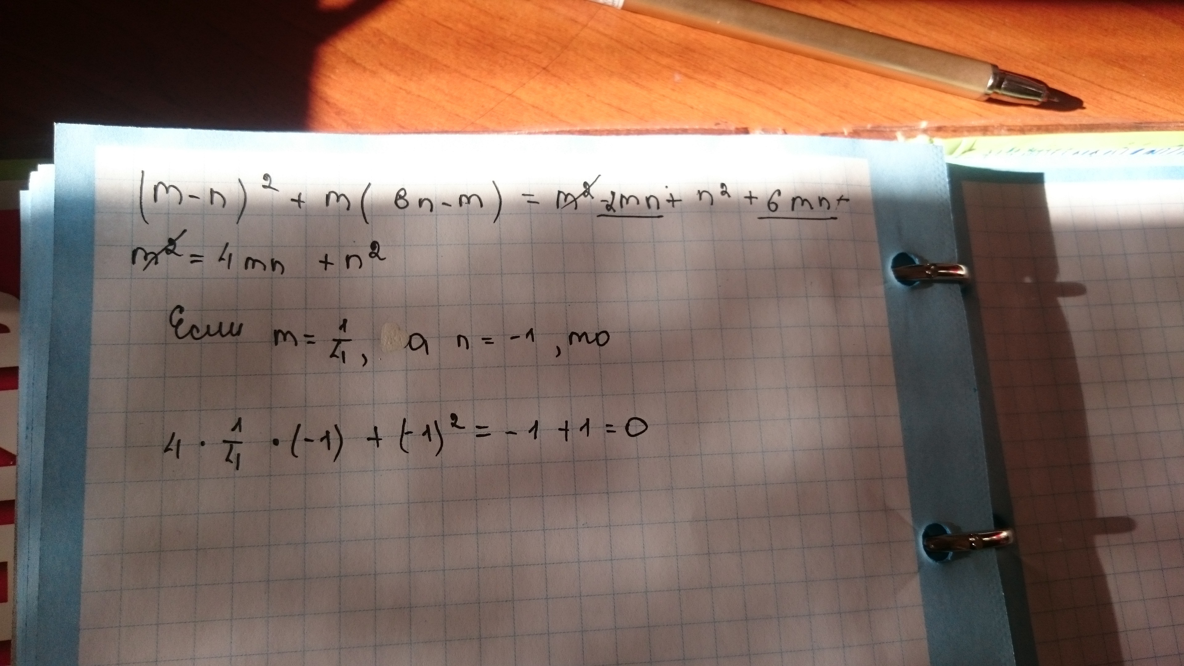 m^2-2mn+n^2+6mn-m^2 - сокращаем м в квадрате