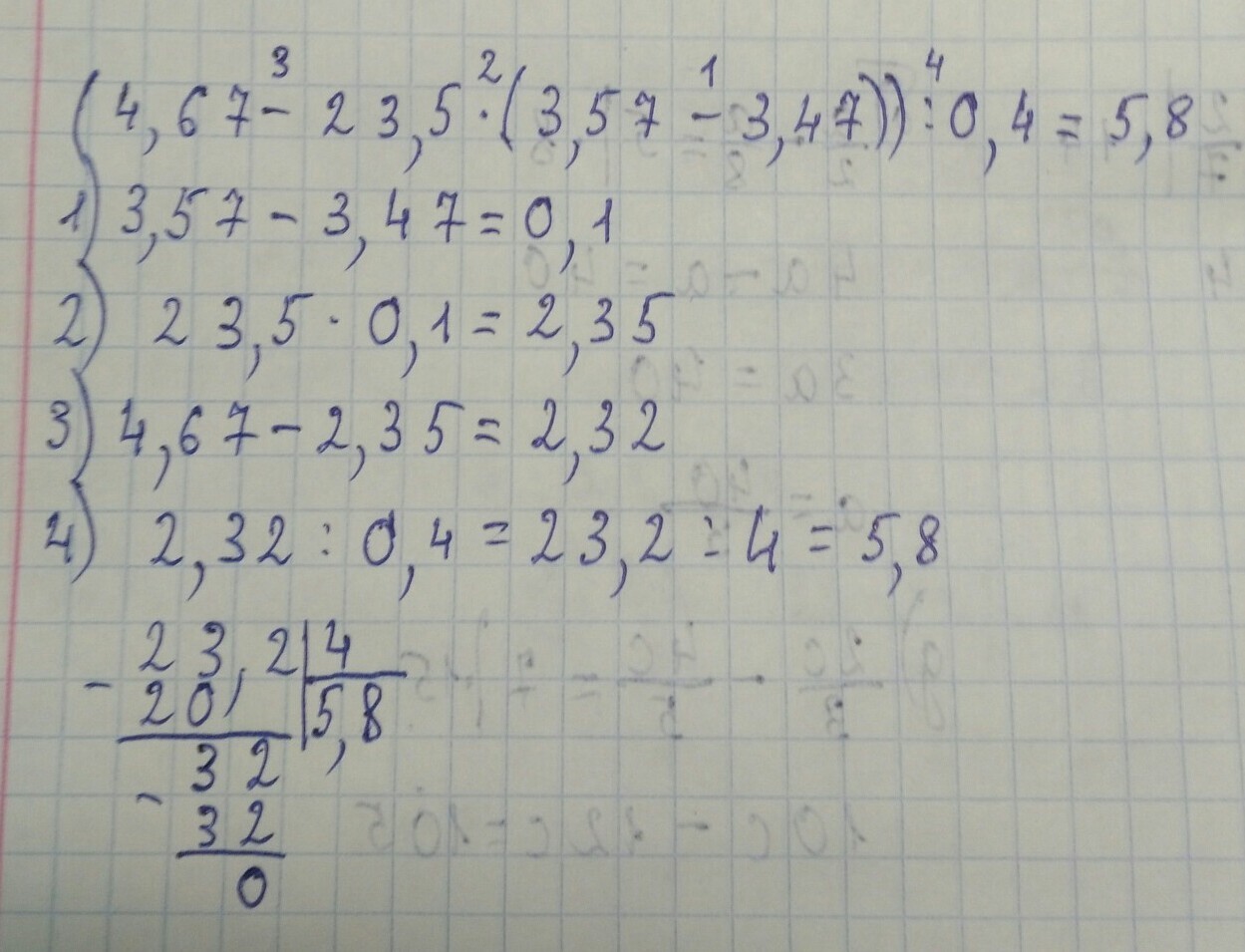 (4,67-23,5*(3,57-3,47)):0,4=5,8